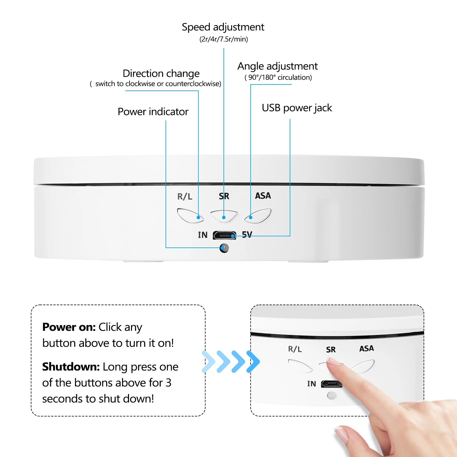 Motorised Rotating Mirror Display Stand,360 Degree Turntable, Jewellery Holder,USB Power Supply, Rotating Shooting, Three Speeds
