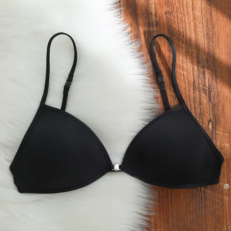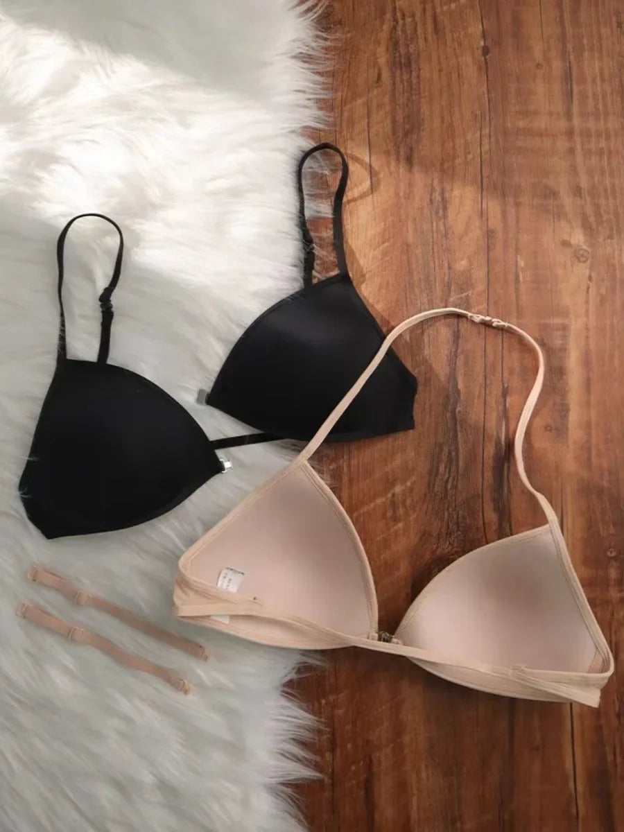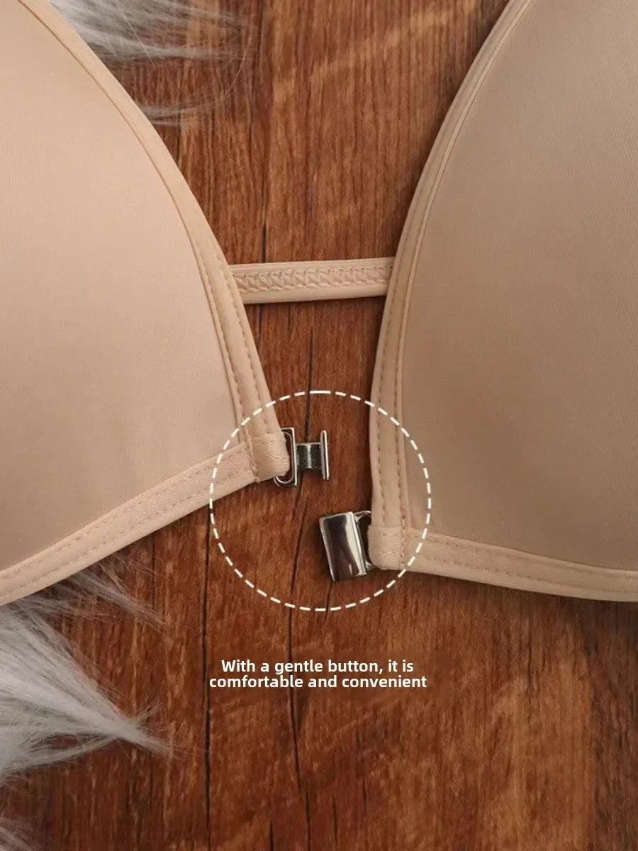 MOYISU French Triangle Cup Underwear Women's Thin Straps Beautiful Back Halter Invisible Front Buckle Bra Thin Seamless Bra