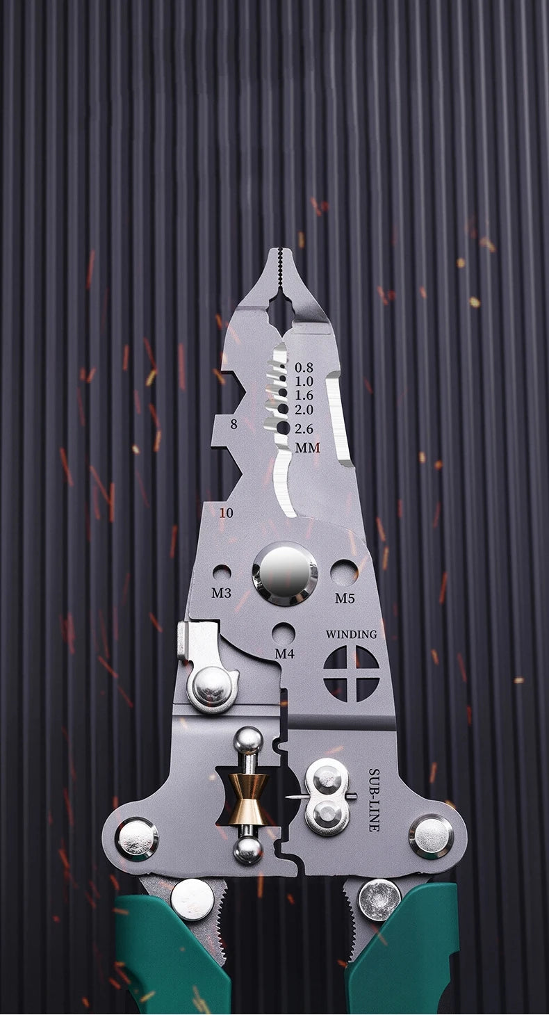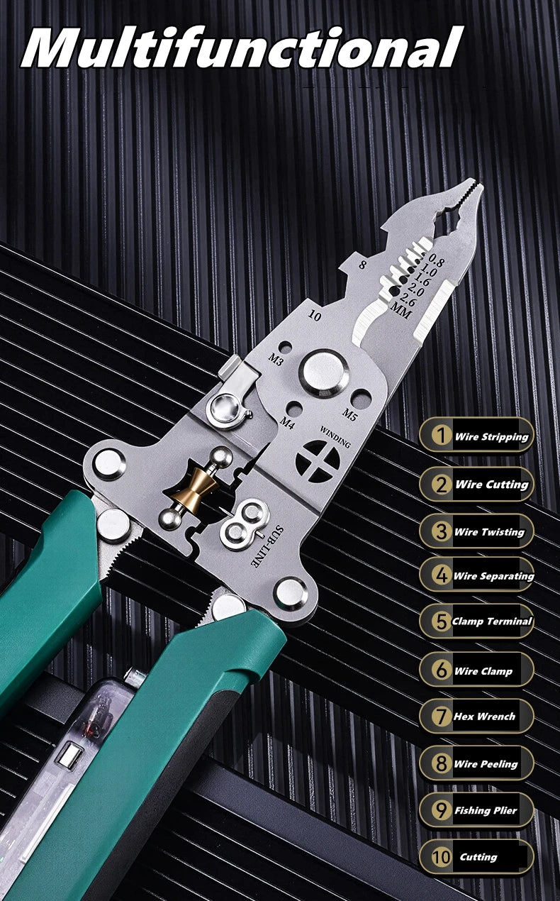 Multifunctional Wire Stripper with Electrical Test Pen Foldable Cable Cutter Crimper Tool, Electrical Folding Pliers for Cutting