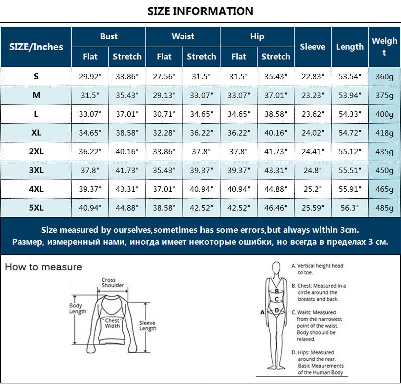 4XL: Bust 100~110 cm,Waist 94~104 cm ,Hips 104~114 cm, Sleeve 64 cm ,Length 142 cm
