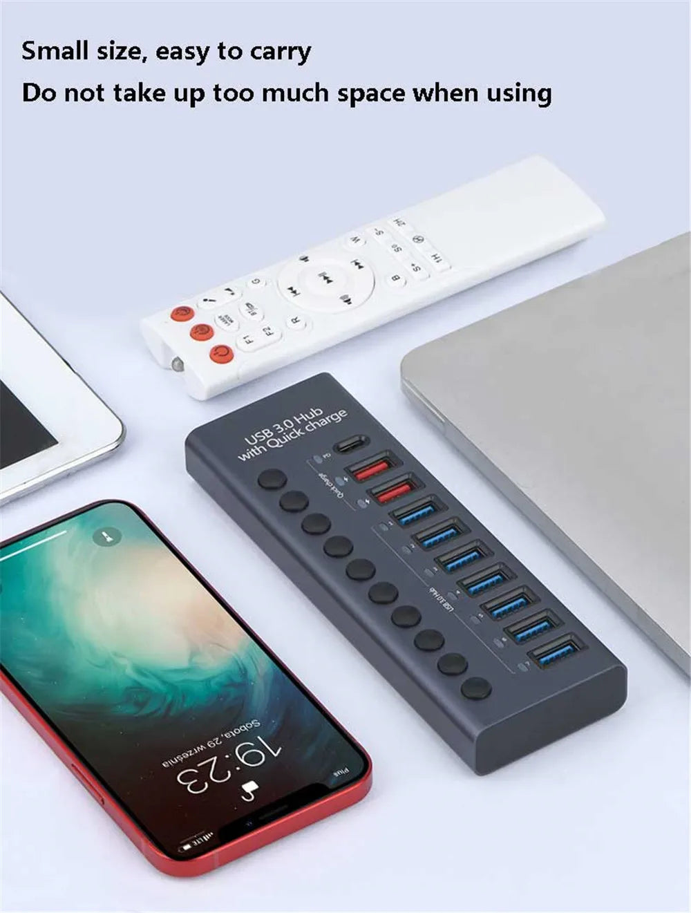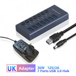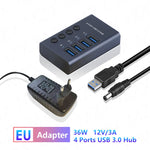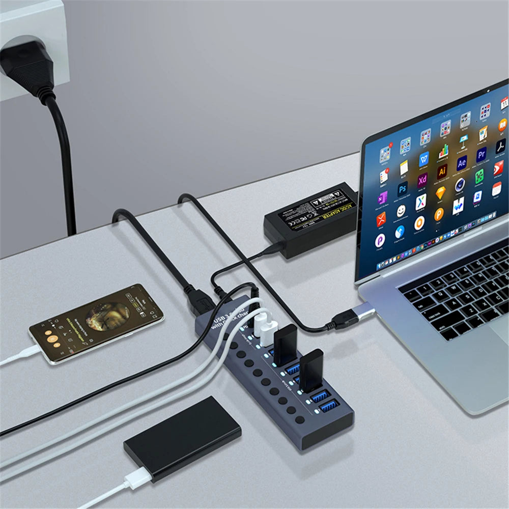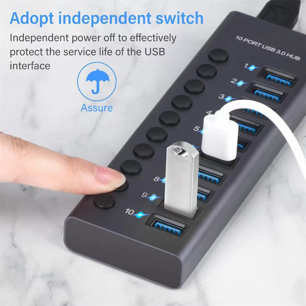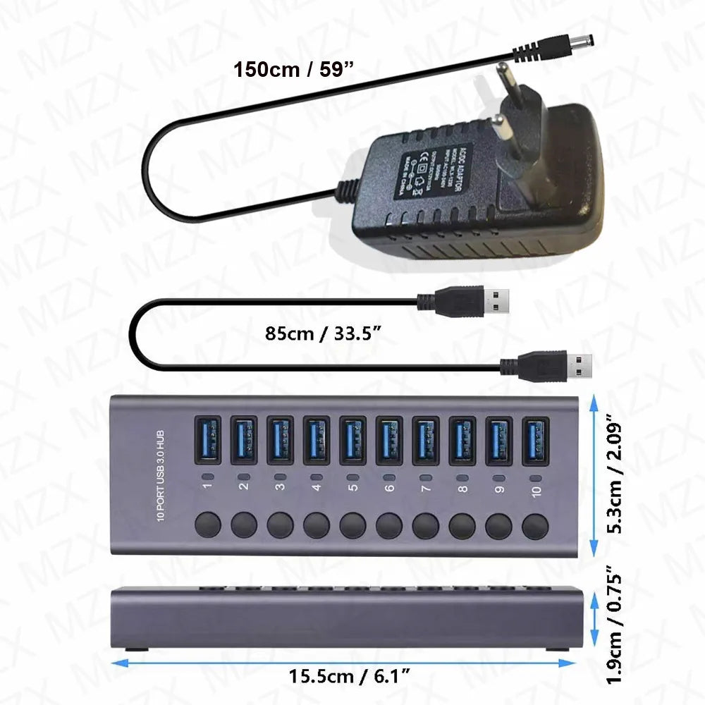MZX 10/7/4 Port Aluminum USB 3.0 Hub A 3 0 Multi Splitter Concentrator Multiple Extension Hub Switch Power Adapter for PC Laptop