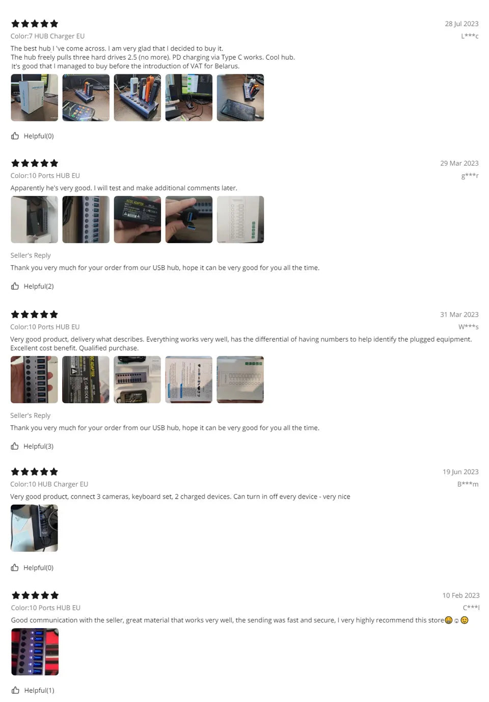 3) HUB985B: Total 7 ports, all 7 Ports USB 3.0 Hub, with 36W(12V/3A) power adapter;