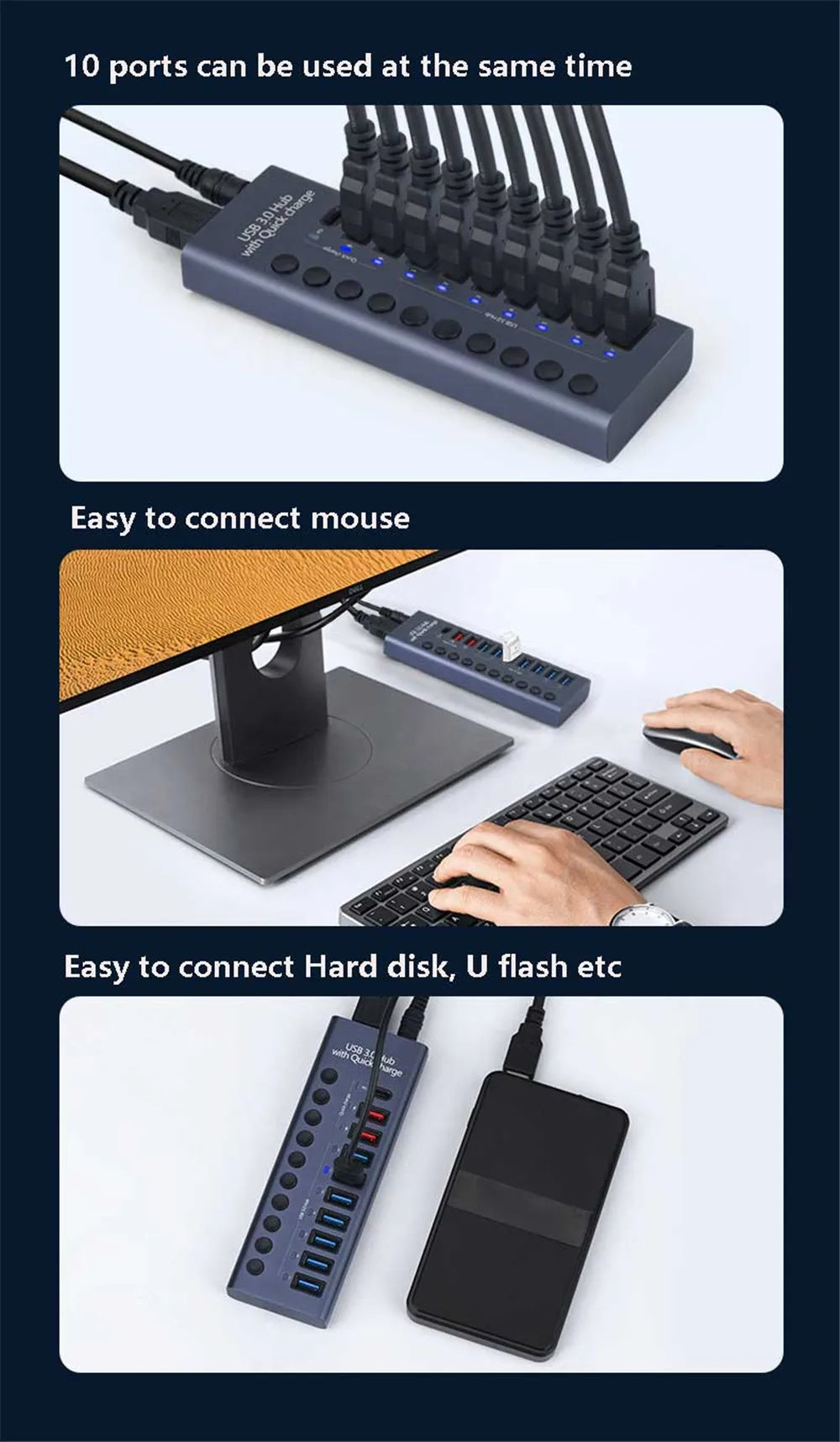 * Expanding 10 USB 3.0 ports for your PC, laptop, smart TV or game console.