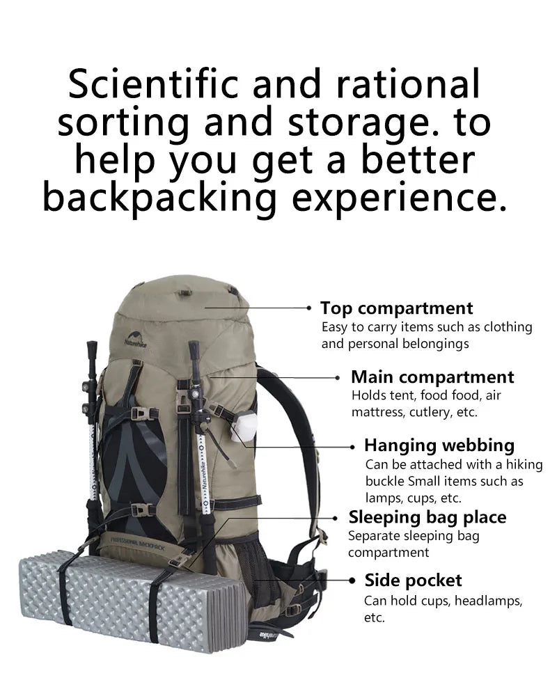 Naturehike 70L Camping Backpack Ergonomic Large Capacity Hiking Bags For Man With Rain Cover Outdoor Travel Trekking Backpacks