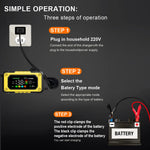 Types of batteries: Most types of lead acid batteries including Calcium, Gel AGM, Wet, lead Acid, LiFePO4,etc