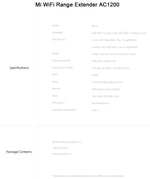1 x Xiaomi Mi WiFi Range Extender AC1200 2.4 / 5GHz 1 x User Manual 1 x Warranty card |