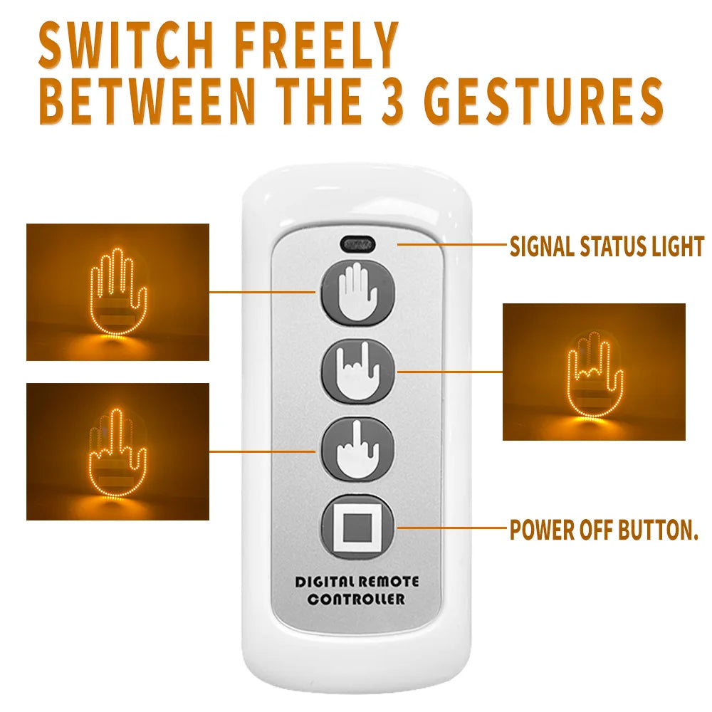 New LED Illuminated Gesture Light Car Finger Light With Remote Road Rage Signs Middle Finger Gesture Light Hand Lamp