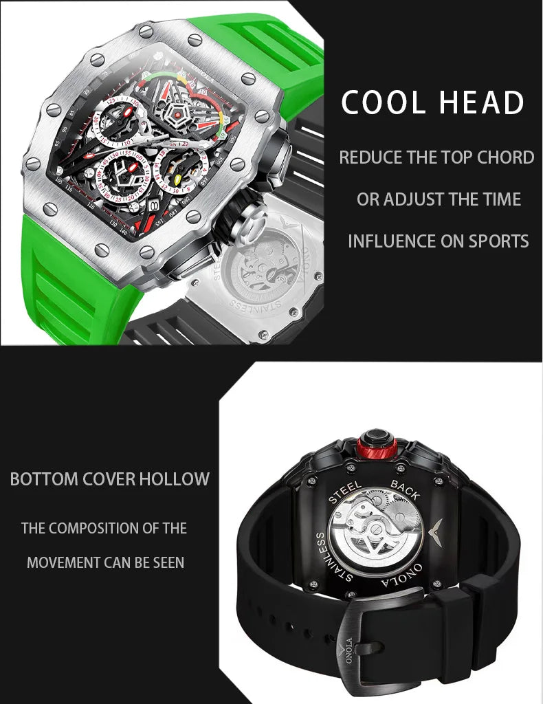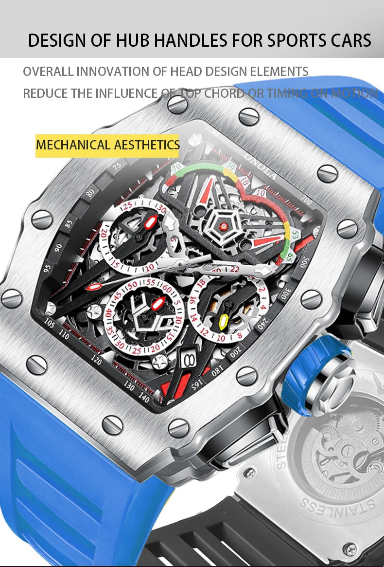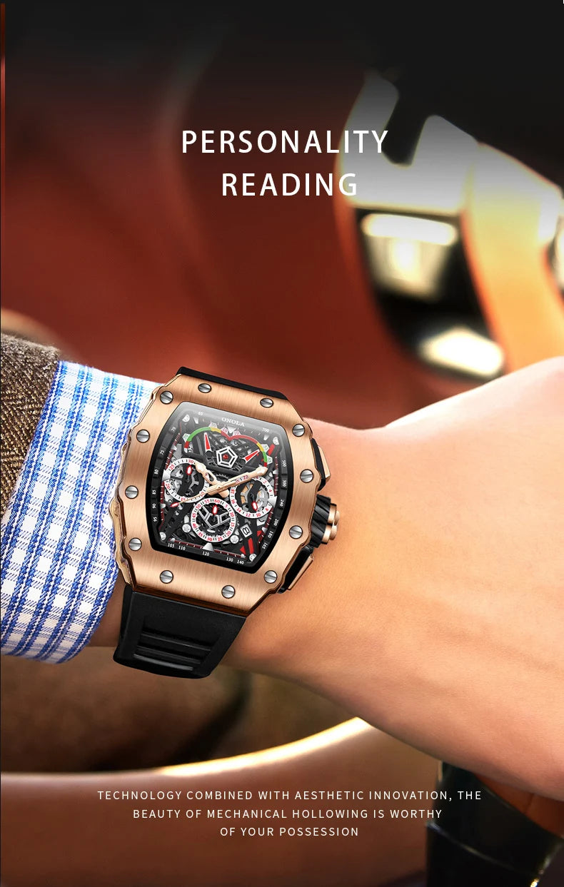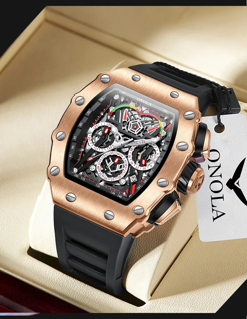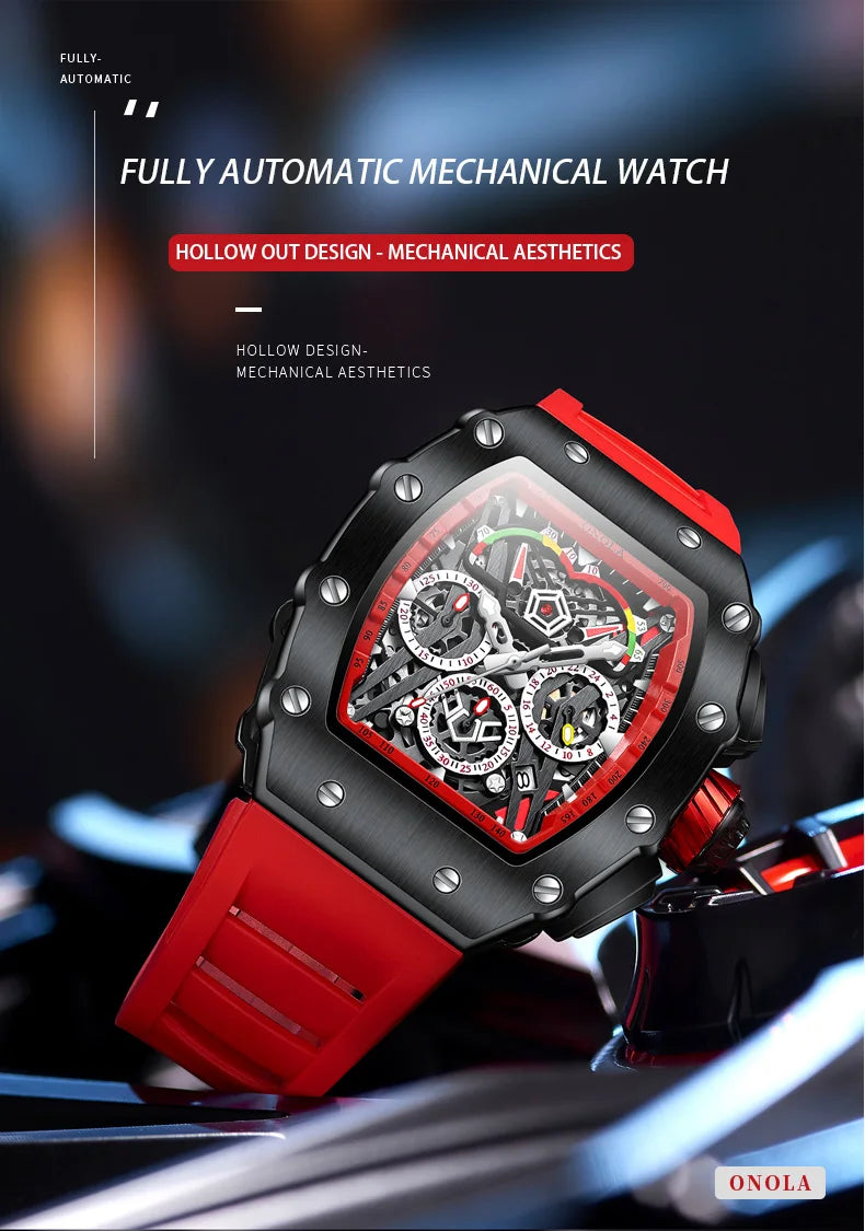 New Luxury Men Watch ONOLA Fashion Fully Automatic Mechanical Watches Man Unique Design Waterproof Tape Watch Wristwatch