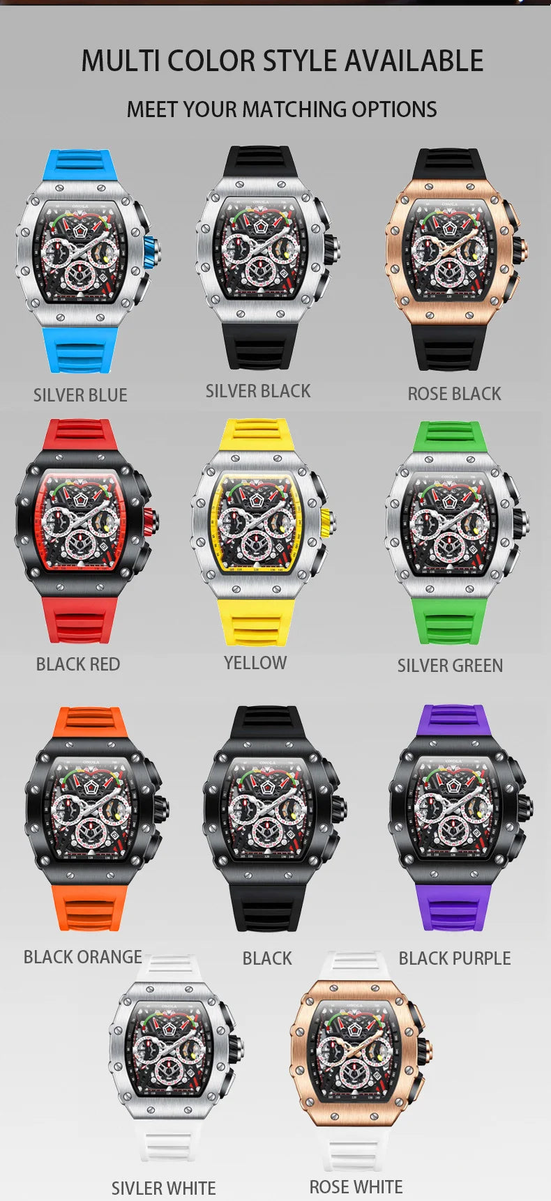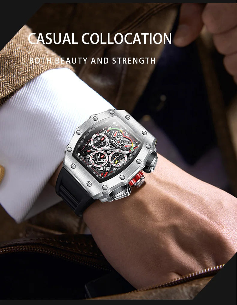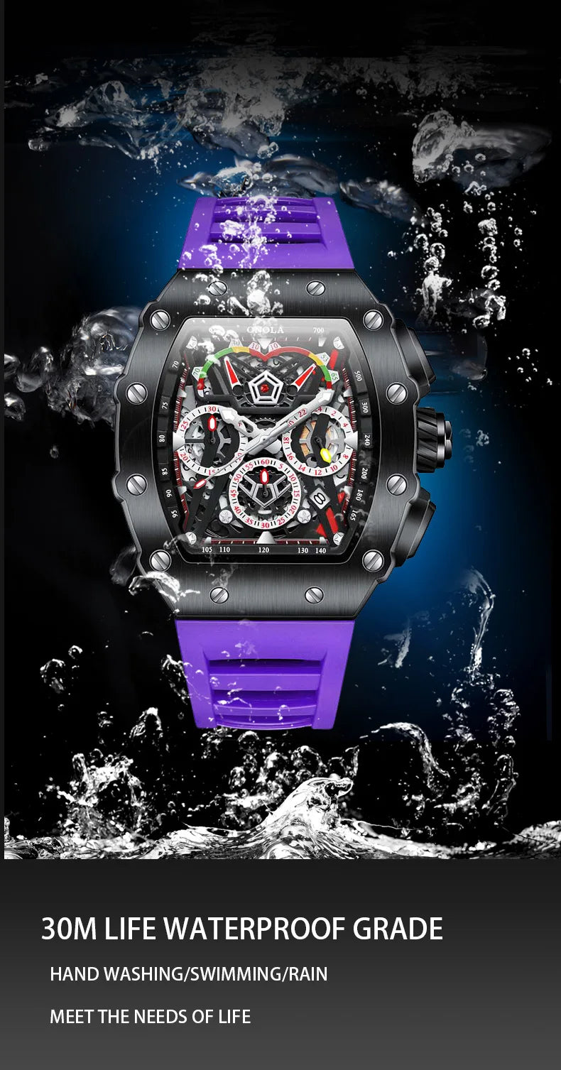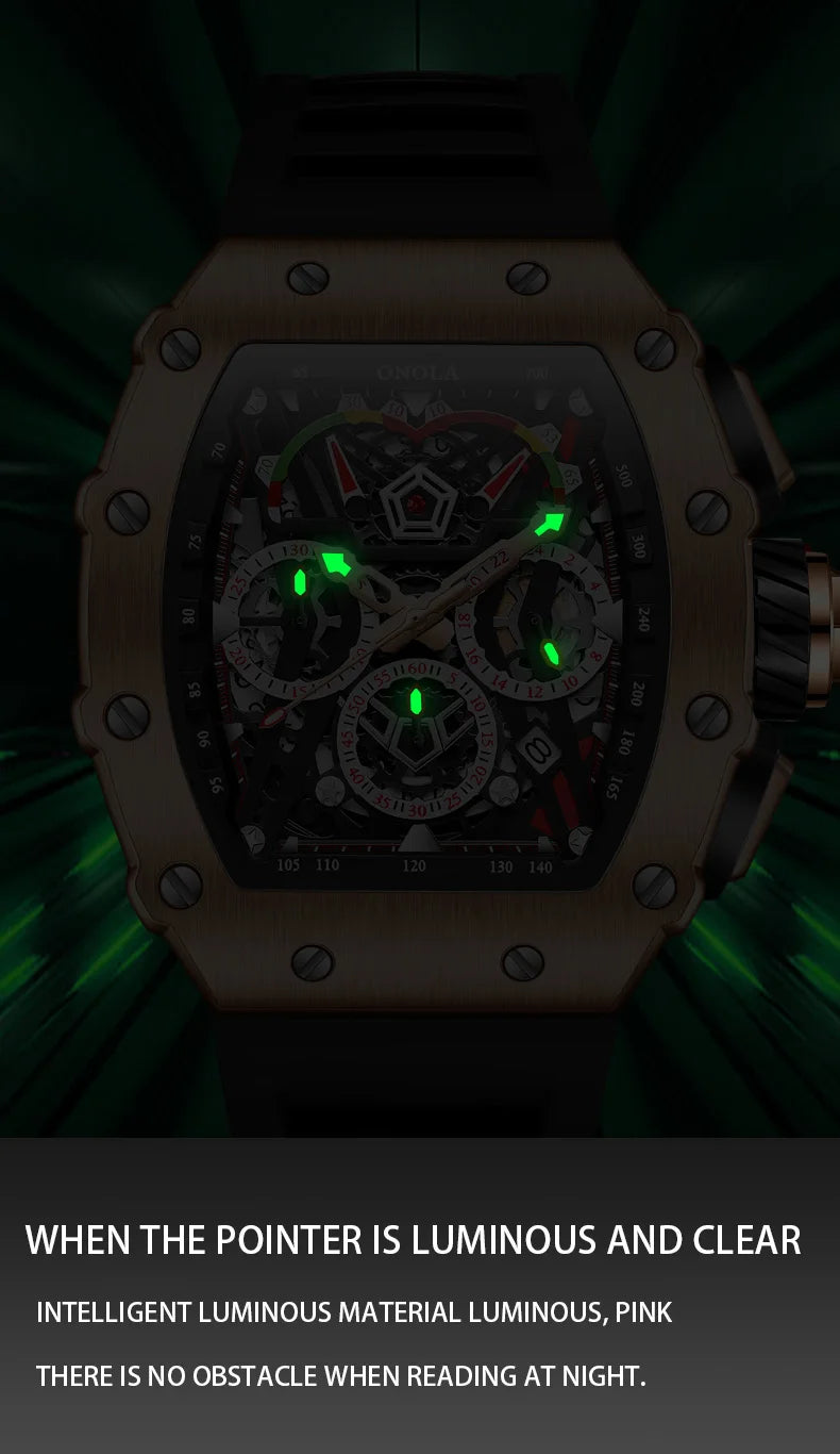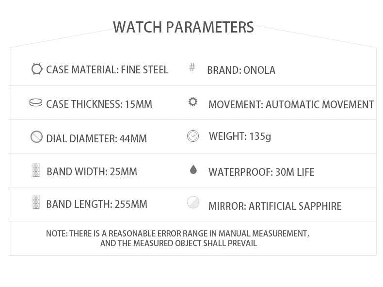 New Luxury Men Watch ONOLA Fashion Fully Automatic Mechanical Watches Man Unique Design Waterproof Tape Watch Wristwatch