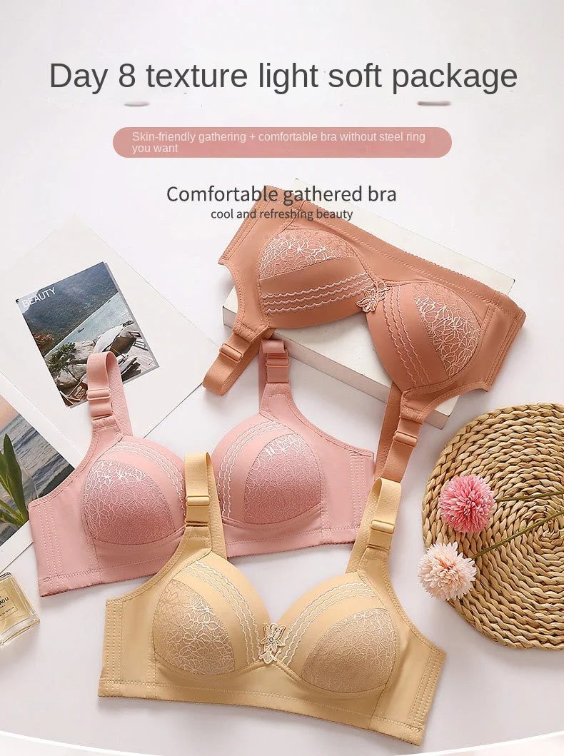 New Non-magnetic Thin Cup Glossy Fat Mm Bra Large Size No Underwire Comfortable Breathable Gathered Women's Underwear