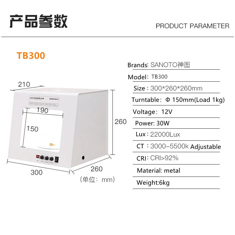 New SANOTO Photo Studio Photography Light Box Softbox Built-in Rotating Turntable For Jewelry Photography Video 3D Scanning