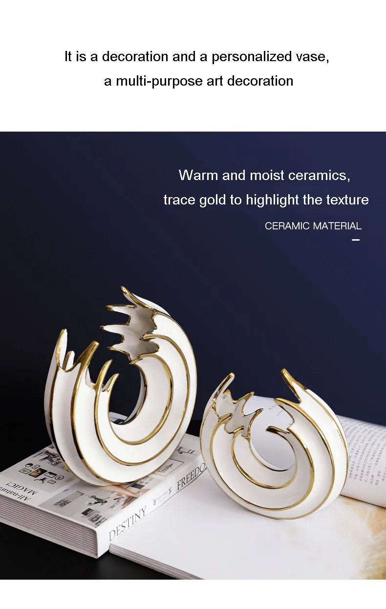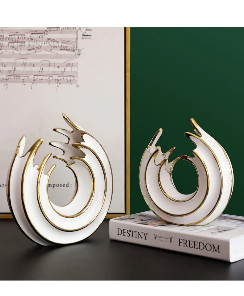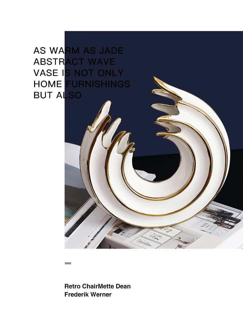 Nordic Creative Round Light Luxury Abstract Sea Wave Ceramic Statue