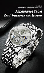 Feature: Shock Resistant,Luminous,Moon Phase,Chronograph,Water Resistant,Auto Date