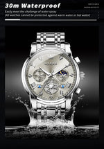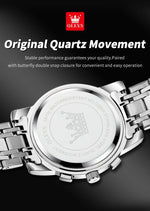 OLEVS Men's Watches Classic Multifunctional Fltwheel Chronograph Original Quartz Wristwatch Moon Phase 24 Hour Waterproof reloj