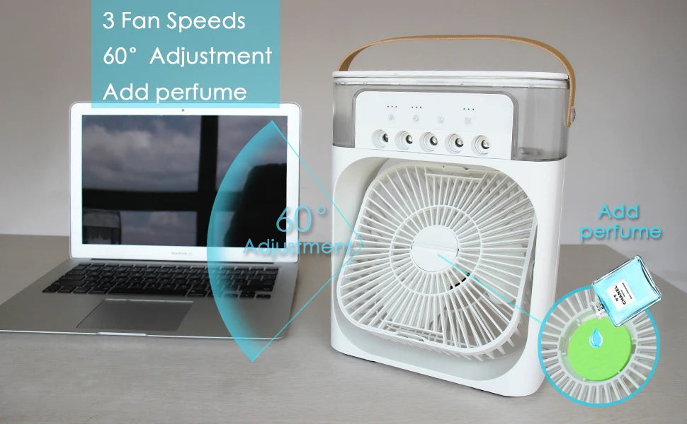 OREADEX 3 In 1 Fan AIr Conditioner Household Small Air Cooler LED Night Light Portable Humidifier Adjustment Fan Office Home Fan