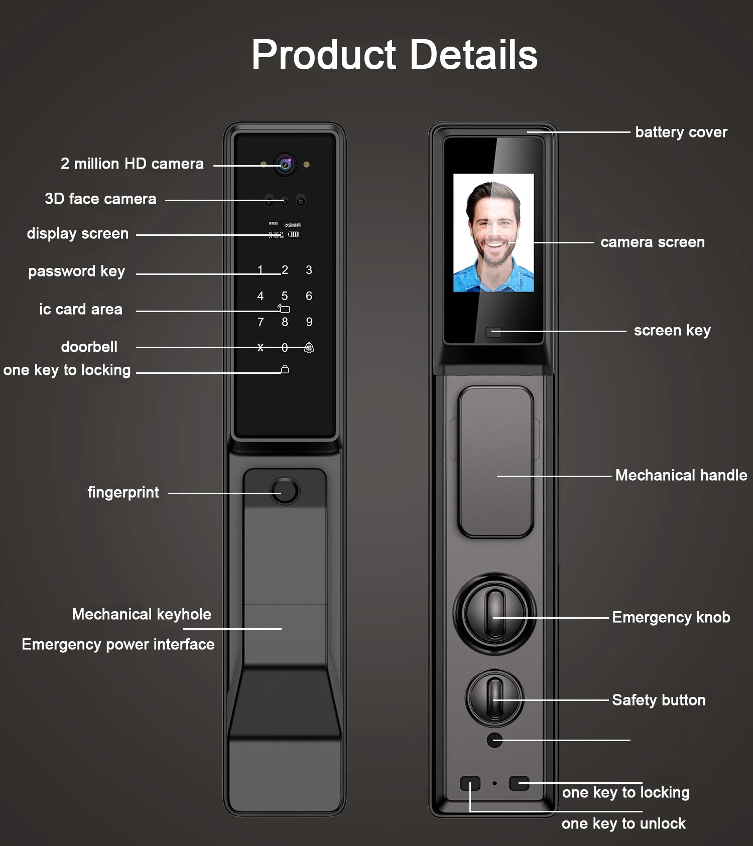 Special Features:Temporary password, Tamper Alarm,Remote unlock, Voice intercom, Tuya wifi APP,Face unlock ,night vision, infrared