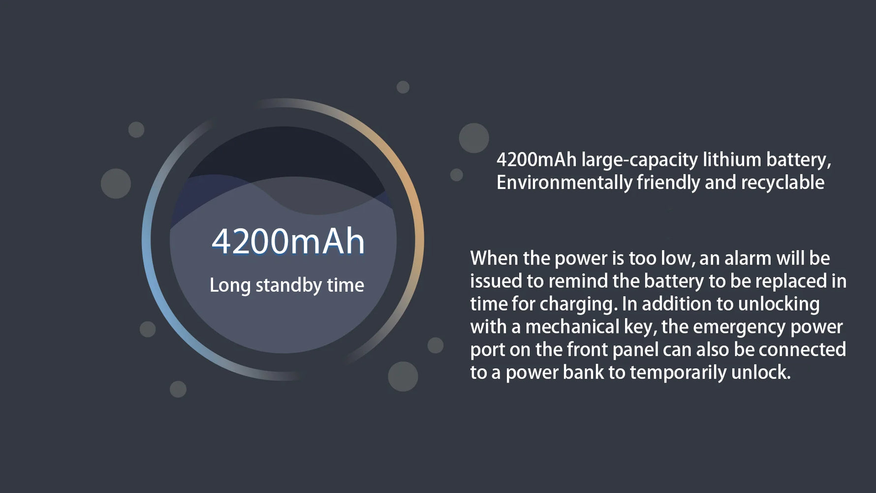 The 4200mAh rechargeable lithium battery can be unlocked 5000 times with a single full charge, and it can be used for about 6 months. The package is equipped with a charging cable, please prepare a 5V/2A charging head by yourself, and the charging time is 1 to 2 hours.