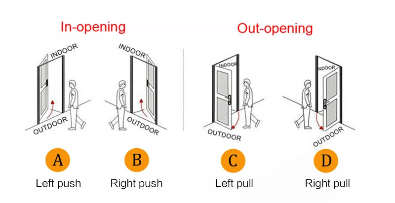 The direction of opening the door is not important, it can be installed in four directions of Left push/Right push/Left pull/Right pull, and can be adjusted freely according to actual needs