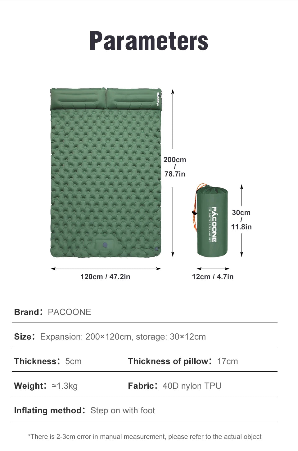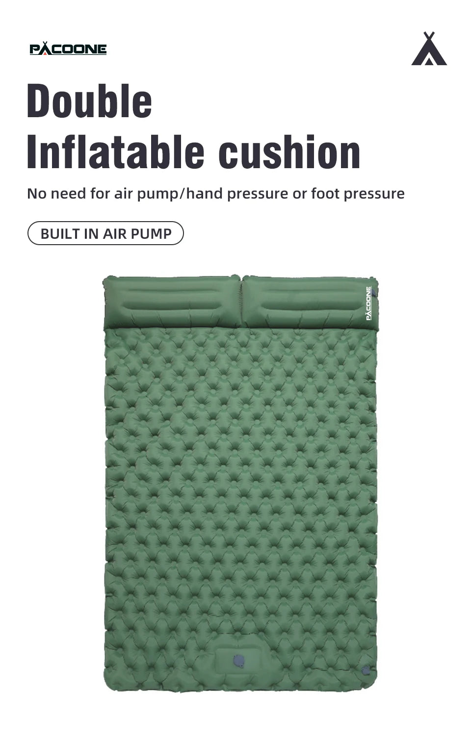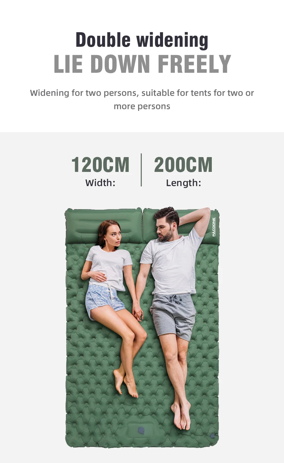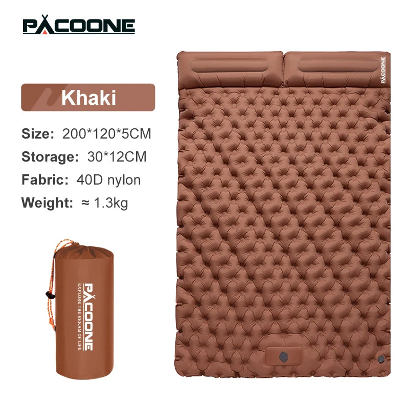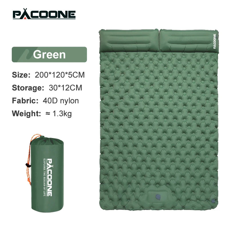PACOONE Outdoor Camping Double Inflatable Mattress Extra Wide Sleeping Pad Ultralight Folding Bed Sleeping Mat Car Travel Mat