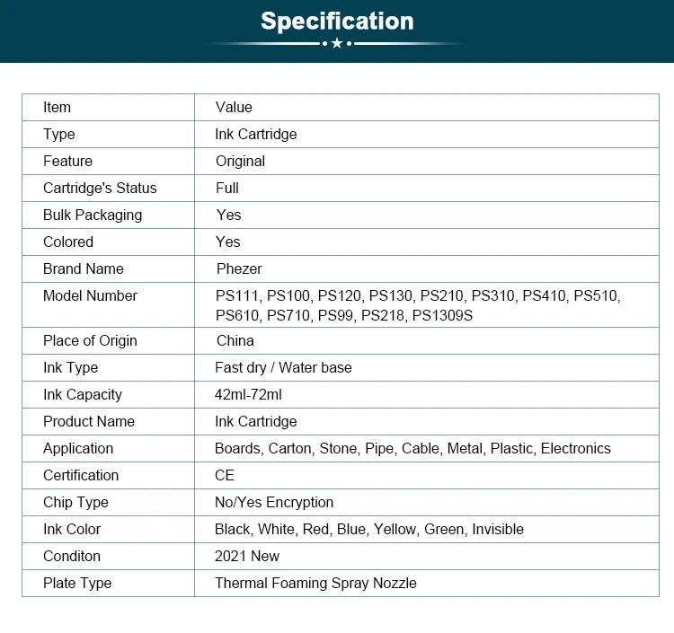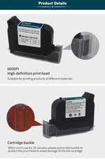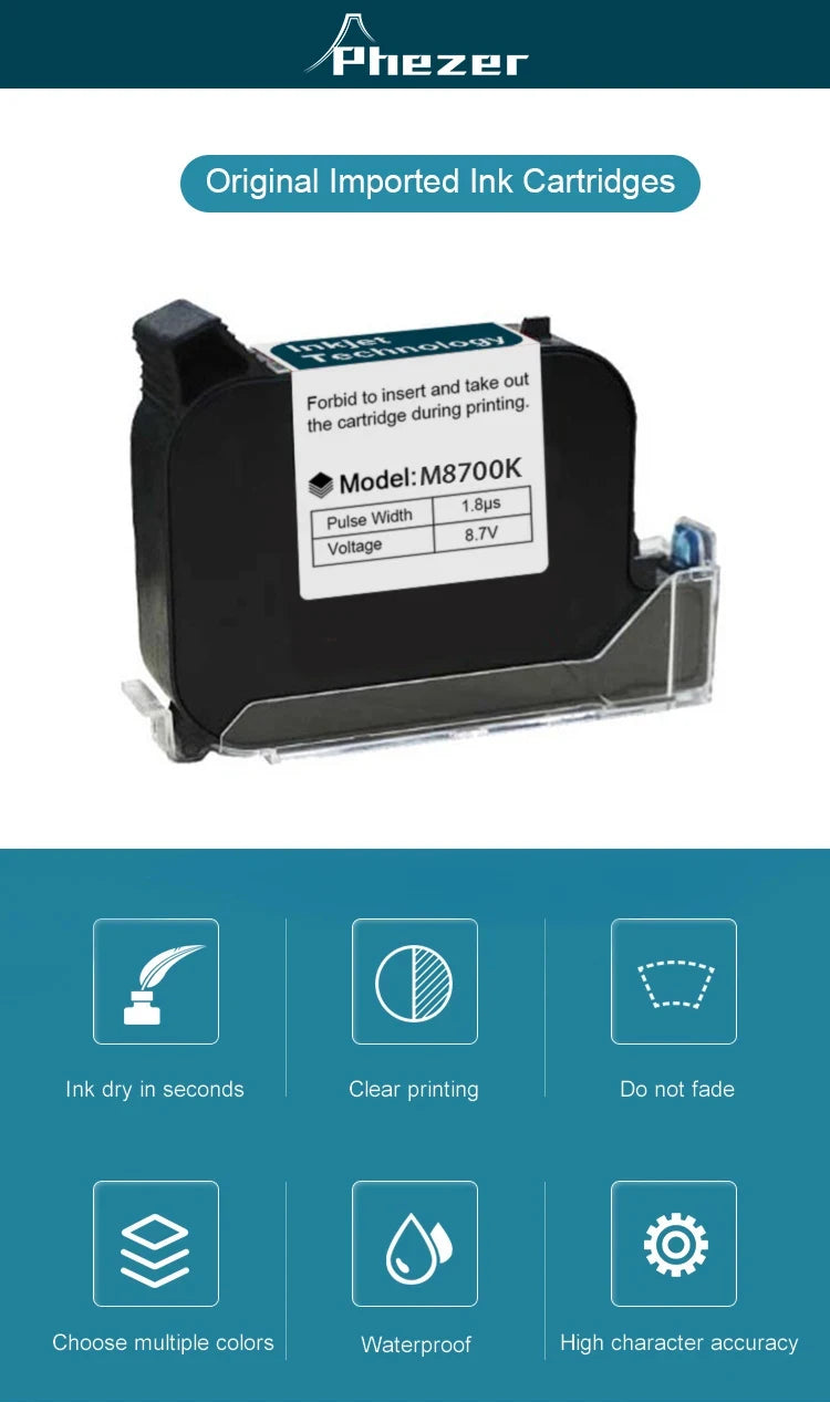 Phezer Handheld Online Inkjet Printer Ink Cartridge Quick Dry Dropshipping PS100 Black Eco Solvent 12.7mm Original Parts Office