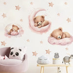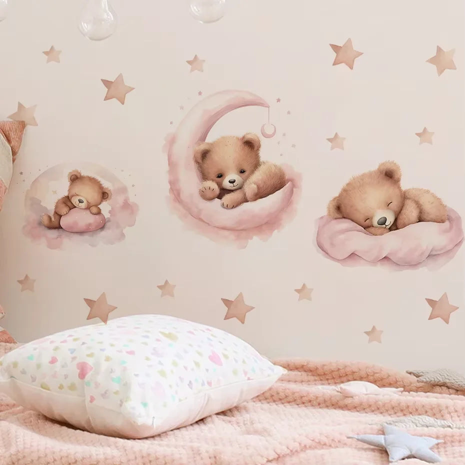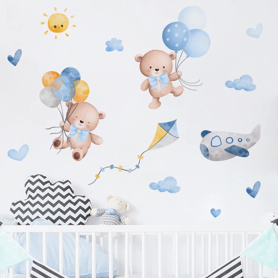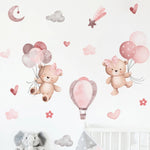 Pink Cartoon Bear Balloon Wall Stickers for Kids Room Decoration Baby Girls Baby Boys Room Wall Decals Kindergarten Nursery Room