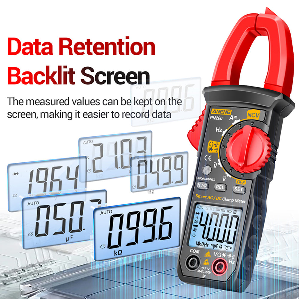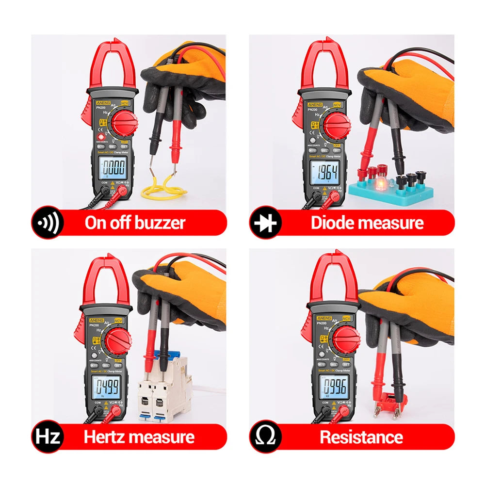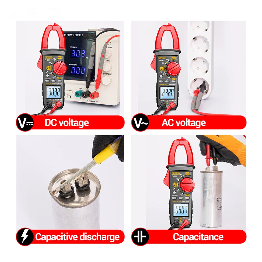 PN200 4000 Counting Multimeter AC/DC 0-600A Electrician Multi-FunctionDigital Clamp Meter Capacitance Resistance Current Tester
