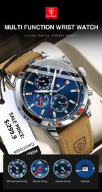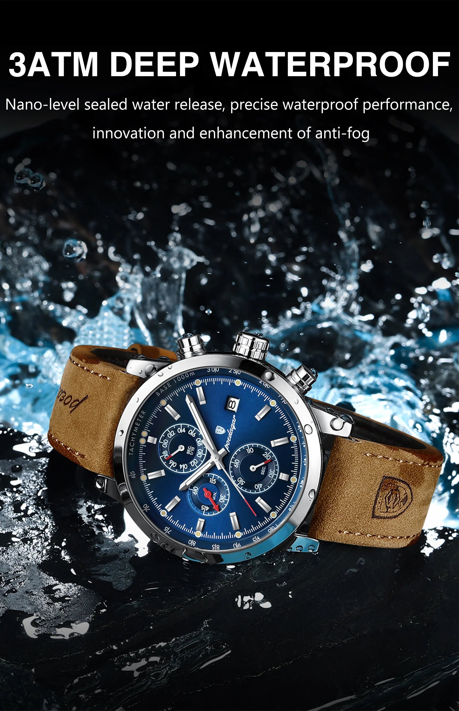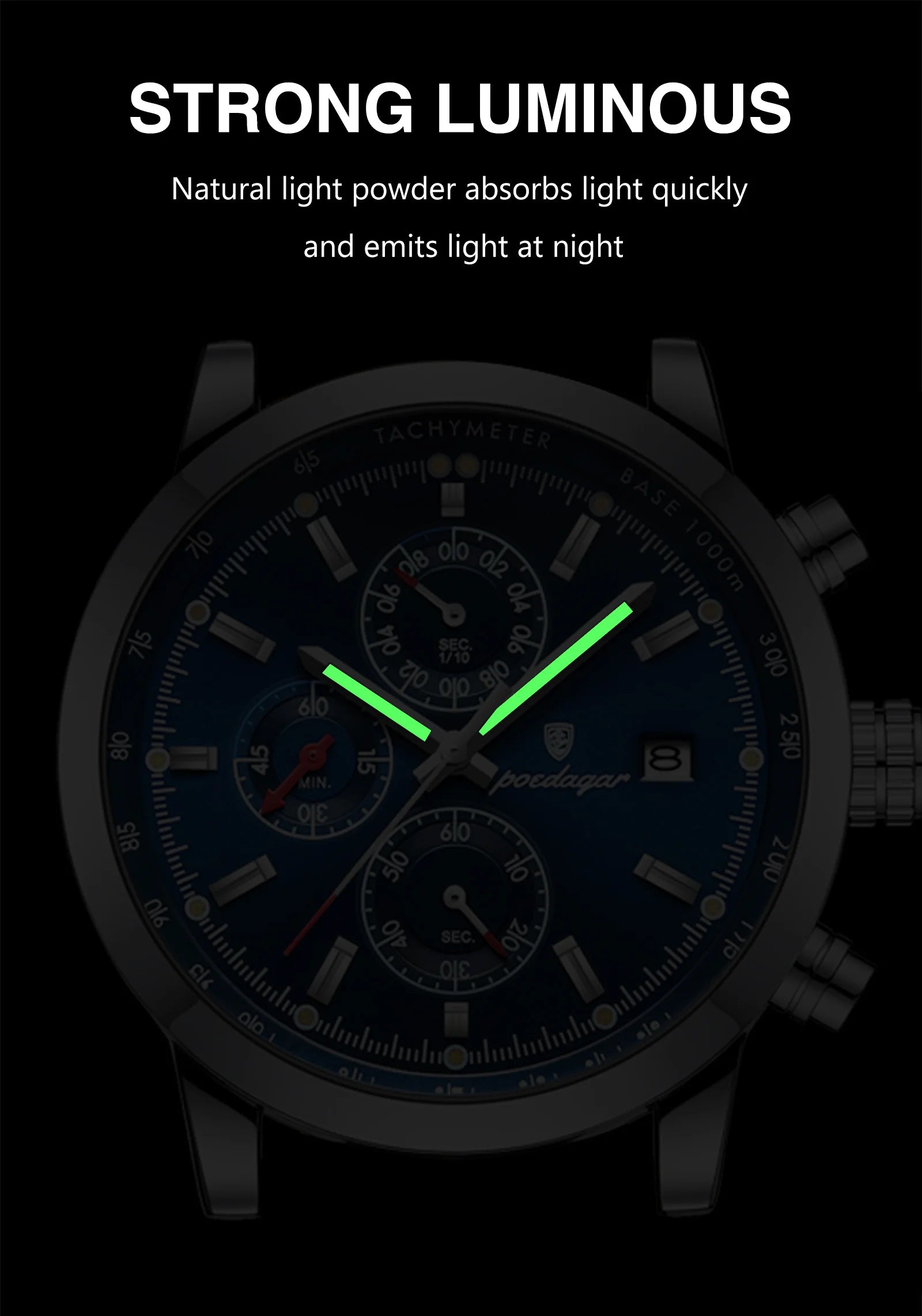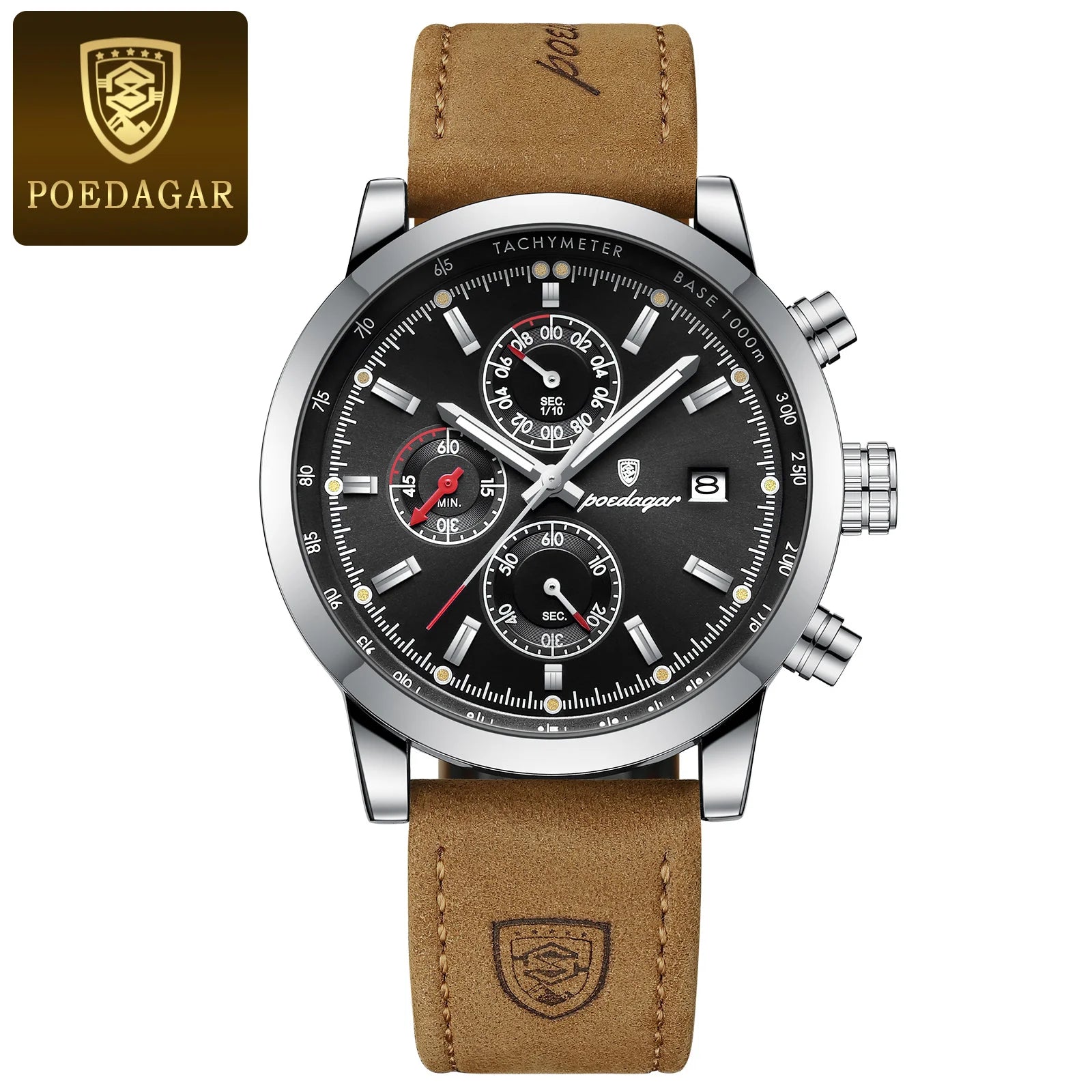 POEDAGAR Luxury Wristwatch for Man Waterproof Luminous Chronograph Date Men Watch Sports Leather Men's Quartz Watches Male reloj