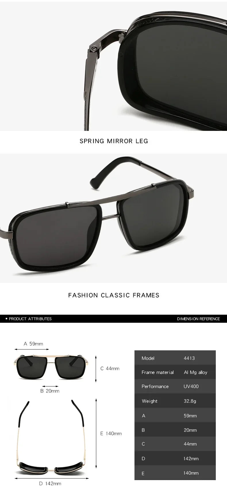 Polarized Punk Sunglasses Men Vintage Fashion Steampunk Square Sun Glasses Male Driving Googles Summer Travelling Shades UV400