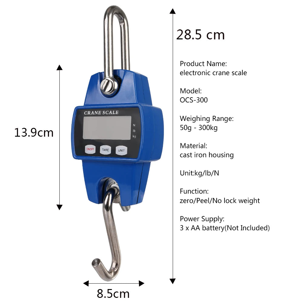 Portable Electronic Digital Crane Scale Weight 300 kg Stainless Steel Heavy Duty Hanging Hook Scales