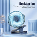 The fan can be clamped in the table, crib or stroller; It can also be used directly on the desktop.