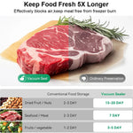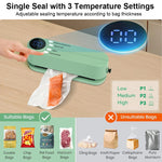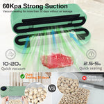 【Powerful Suction & Digital Display】 Our mini vacuum sealers for food storage equipped with a robust 60kPa suction pump, this meat vacuum sealer efficiently completes sealing in 10-20 seconds, providing superior vacuum levels; Intuitive digital controls with LED display allow easy selection of desired mode and sealing time