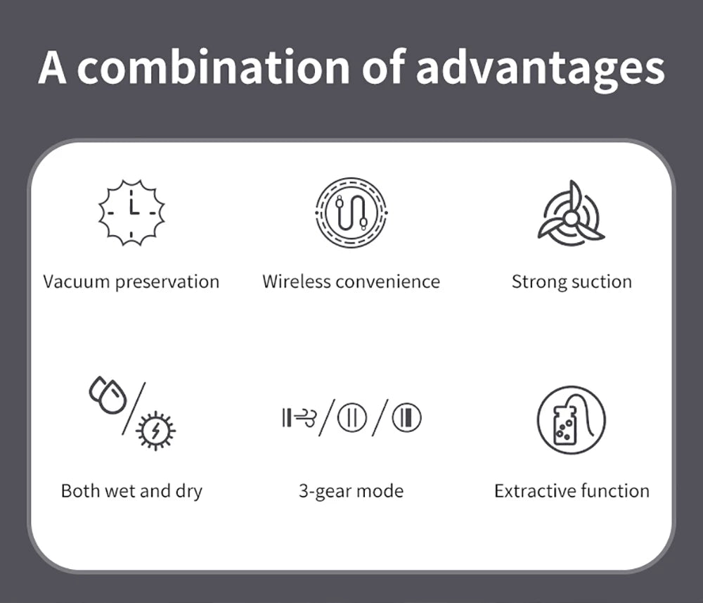 【3 Modes for Daily Use】 "Vacuum Seal" mode: one-touch automatic vacuum and seal, suitable for food that is not easily deformed, such as meat, nuts, and vegetables; "Seal it" mode: only seal, for chip bags or pet food bags; "Point pumping" mode:control the vacuuming process by yourself then seal it, suitable for soft food or moist food