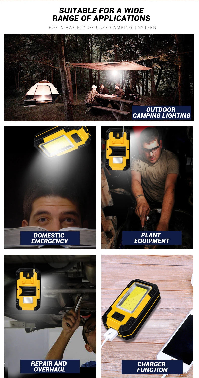 Portable Working Light COB High Bright Flashlight 3Lighting Modes Outdoor Waterproof Camping Fishing Multifunctional Tool Torch