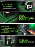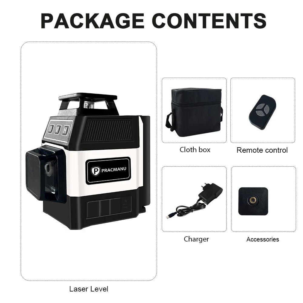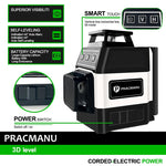 Pracmanu Mini Laser Level 12 Lines 3D level Self-Leveling 360° Horizontal and Vertical Cross Green Laser Beam Lines