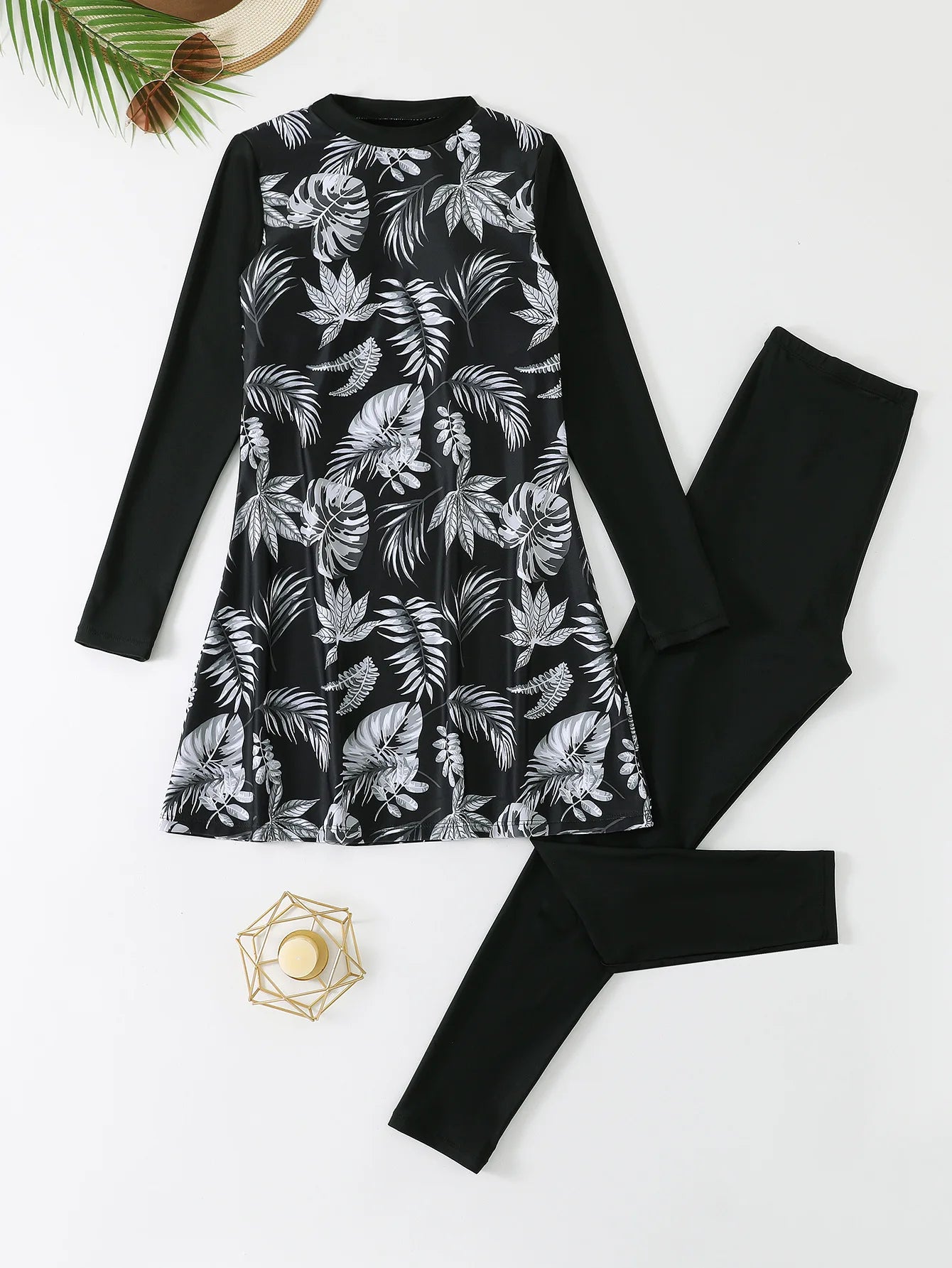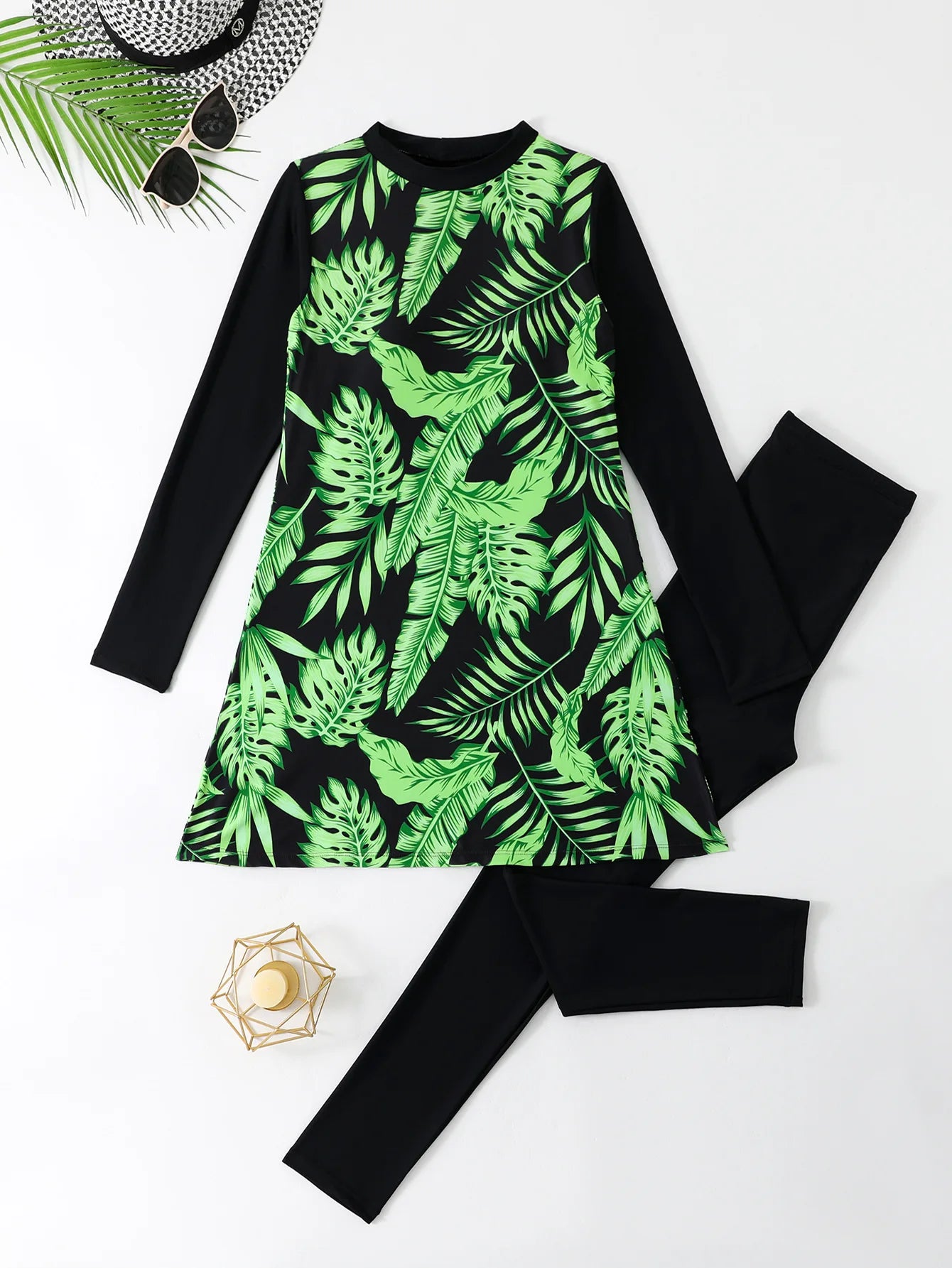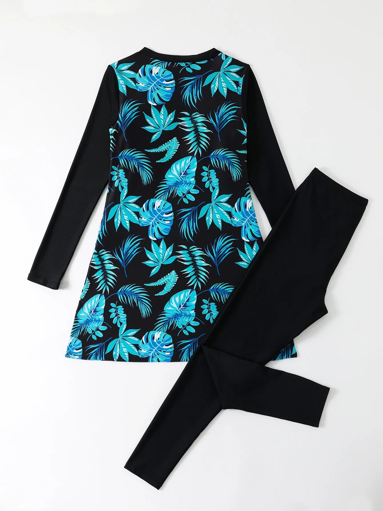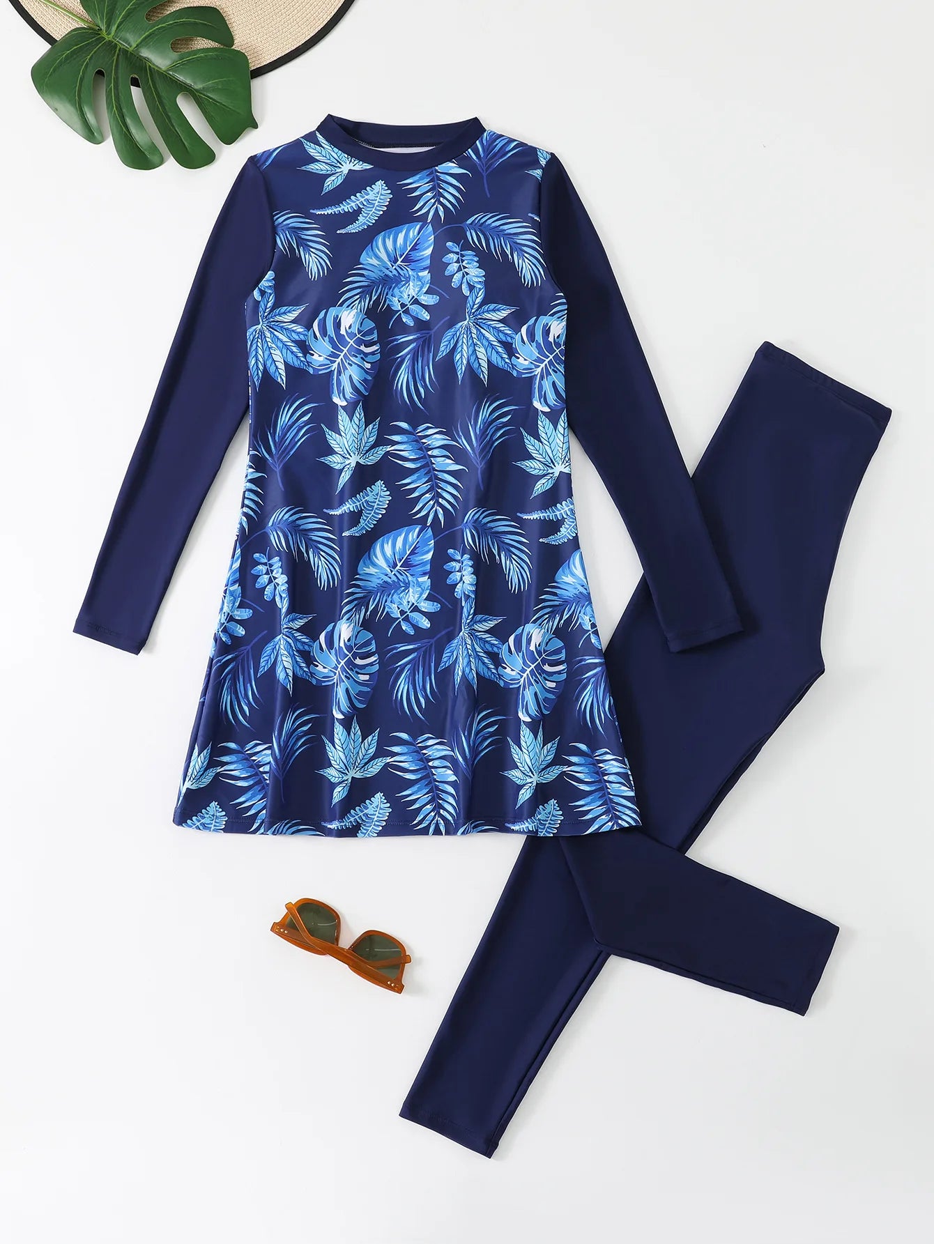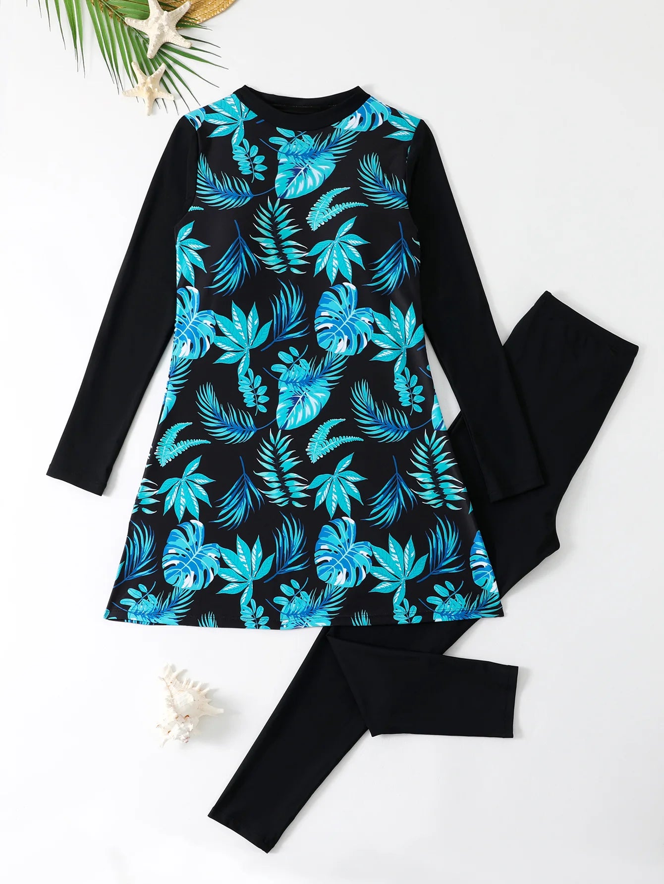 Print Muslim Modest Swimwear Women Swimsuit Burkini Sets Full Cover Islamic Long Sleeve Swimming Suit For Woman Bathing Suits