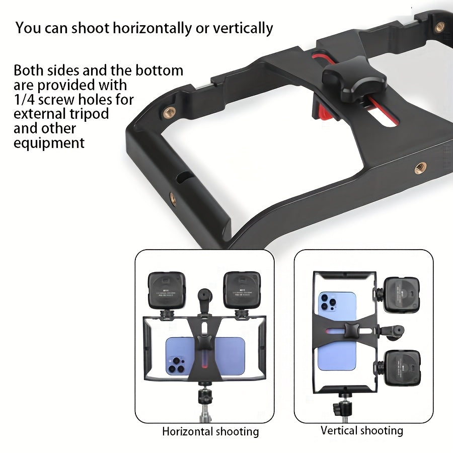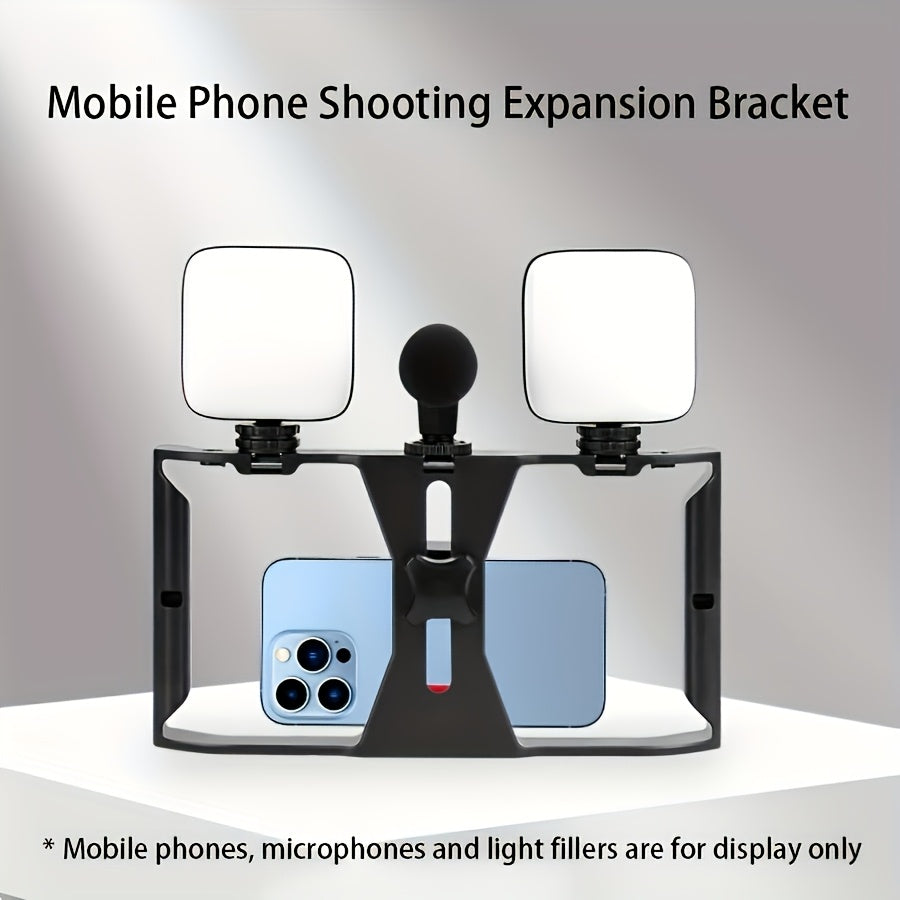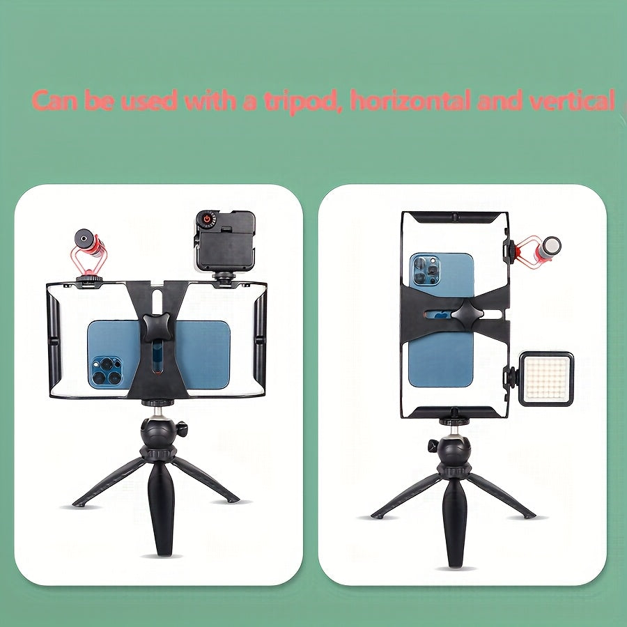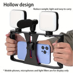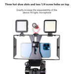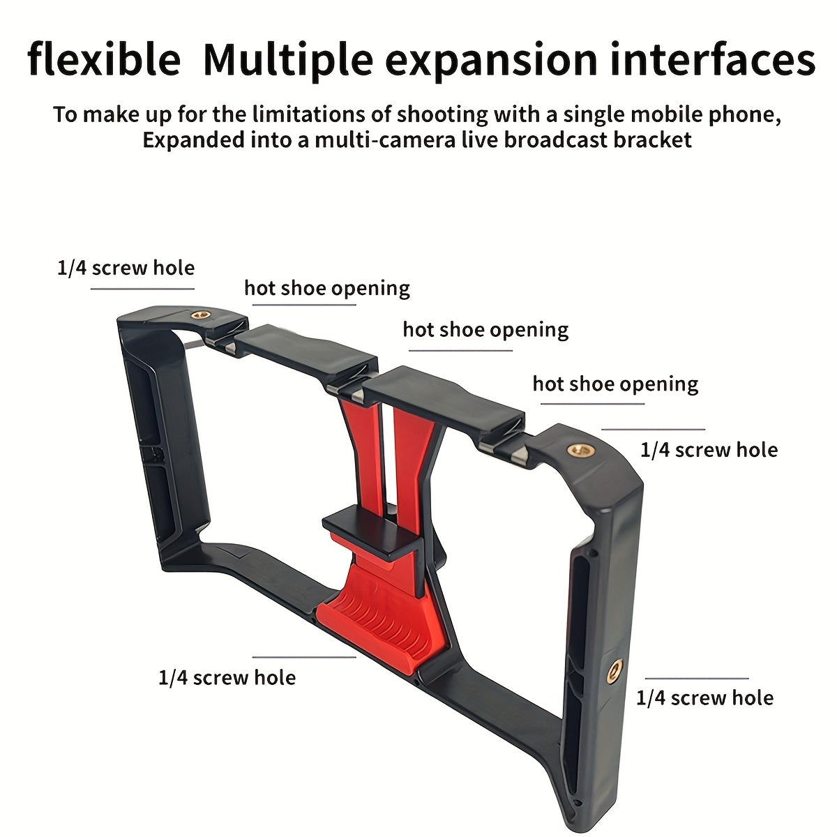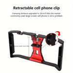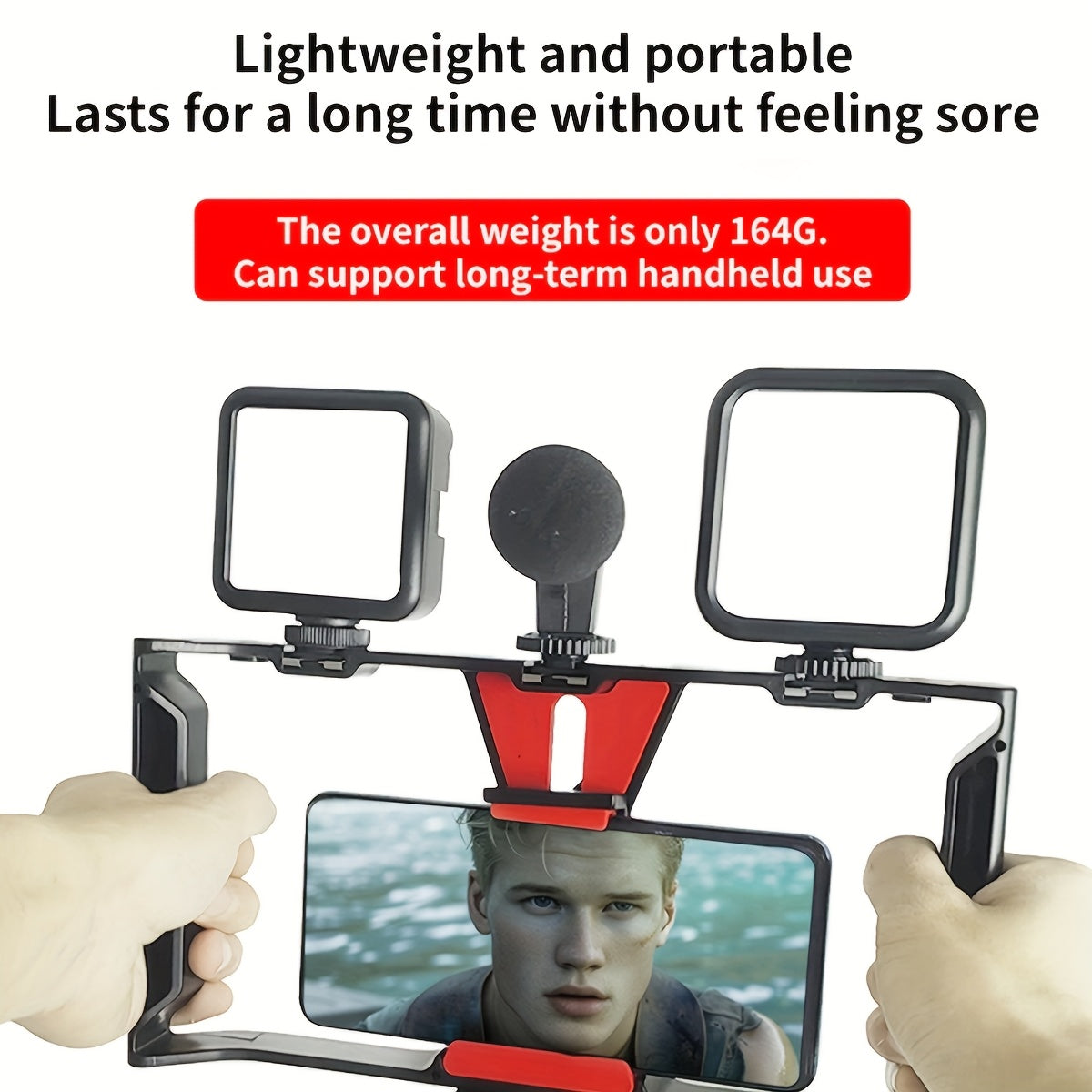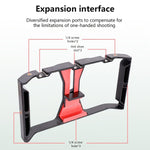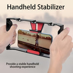 Professional Smartphone Stabilizer with Extendable Microphone & Fill Light - Anti-Shake Handheld Rig for Vlogging, Photography, and Video Accessories, ABS Material, Black with Red Accents, Phone Stabilizer for Video Recording