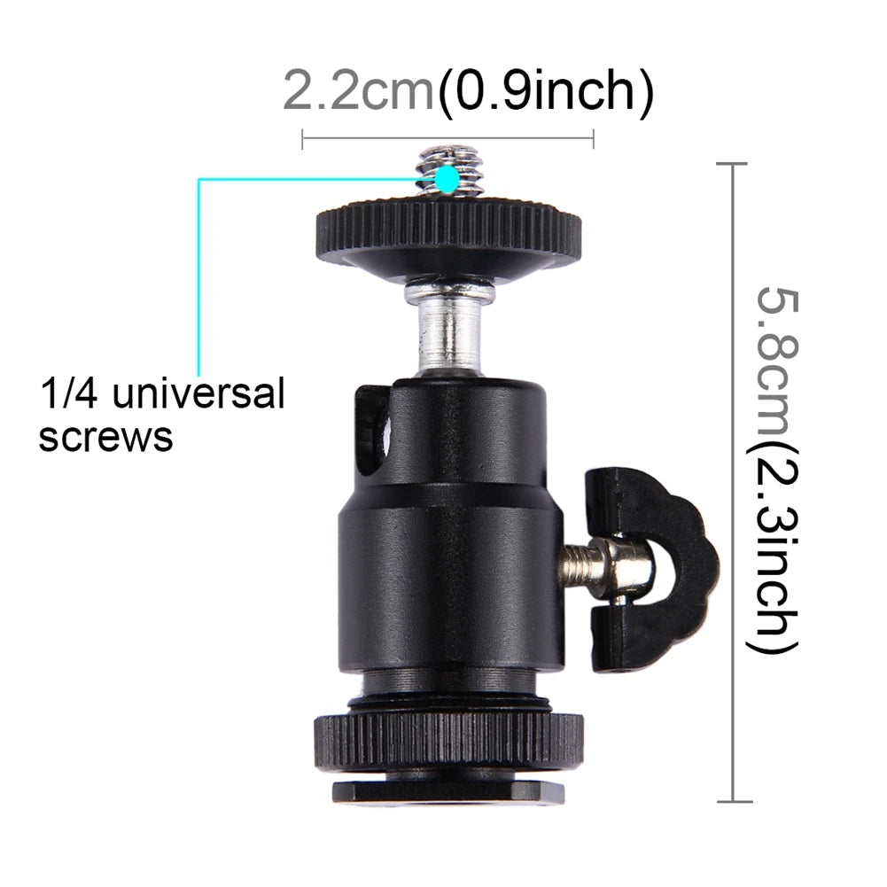1/4 inch universal screw, compatible with Canon/ Nikon/ Sony/Pentax compact cameras and other light weight DSLRs with 1/4 inch thread, max load 1kg/2.2Ib.
