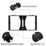 Video Rig Stabilizer Easier way to create fun videos or films. A fantastic tool for who need take higher quality phones or videos close to professional level. With 2 standard shoe mounts, you can get LED video light and microphone attachments with your smart phone. With 3pcs universal 1/4 inch mount thread ,you can mount this rig with any tripod, slider or dollys. A must-have accessory for anyone wanting to improve their filmmaking skills with a phone that shoots better images than many high end cameras. You can mount the rig on any tripod if you go handheld, it allows you to capture relatively smooth shots. Compatible with most smart phones from 4 inch to 7 inch screen.