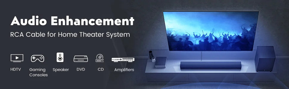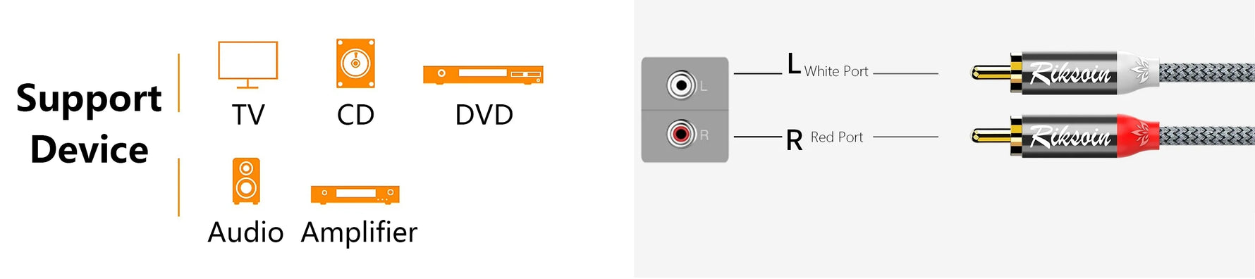 RIKSOIN 2-Male to 2-Male RCA Stereo Audio Cable are good choices for HDTVs, Home Theater, Gaming Consoles, Hi-Fi Speakers, DVD players by amplifying sound quality for a more enjoyable audio experience.