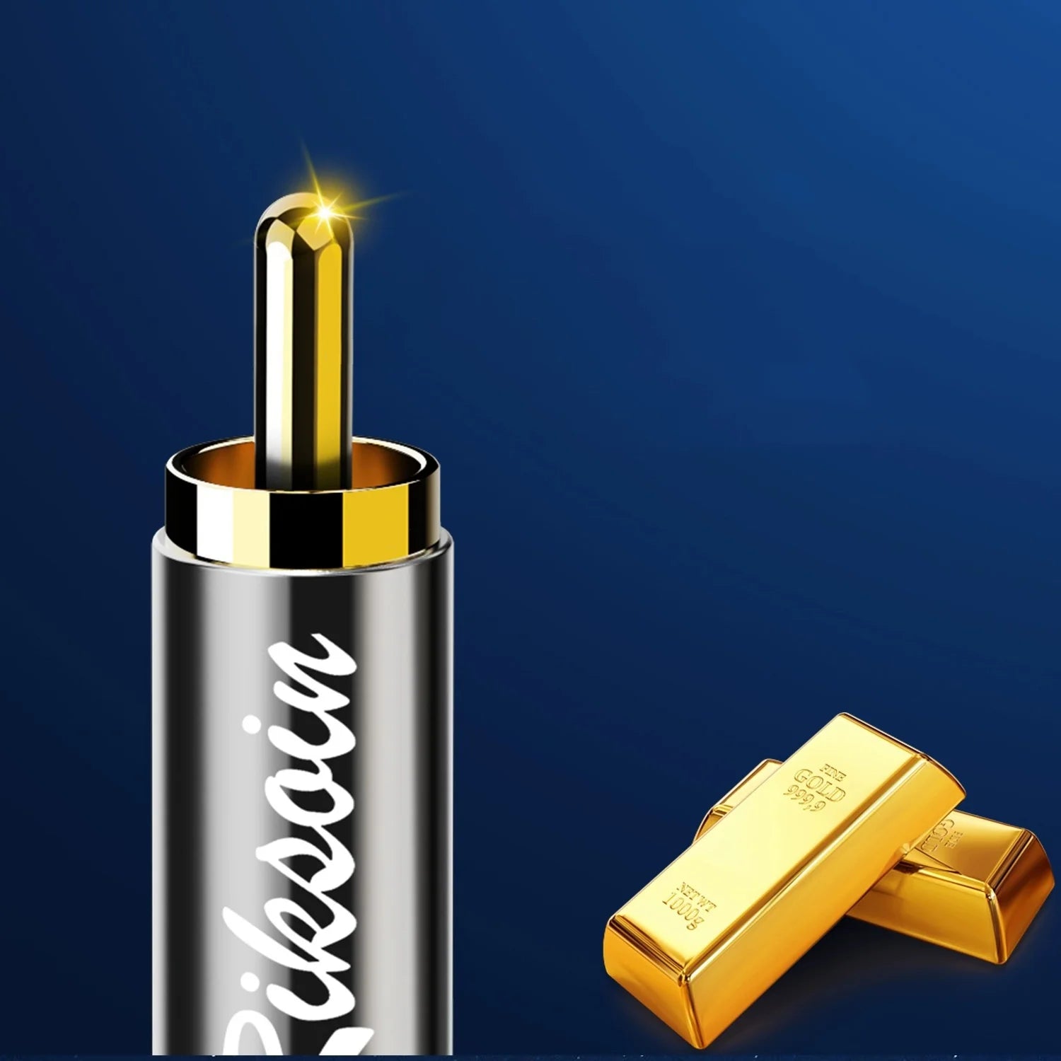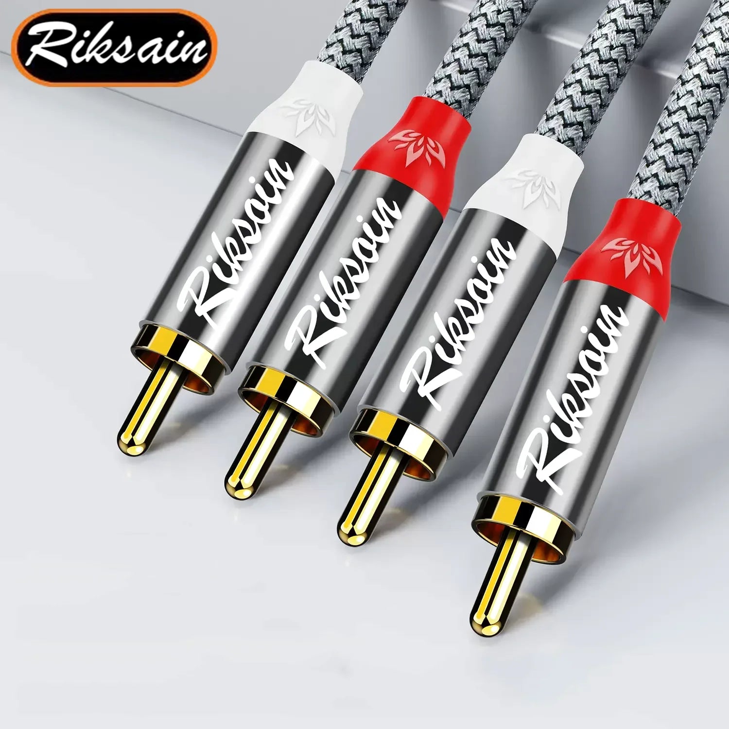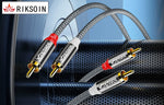 RIKSOIN 2-RCA male-to-male adapter cable features corrosion-resistant gold-plated plugs and high-quality polished metal connectors.