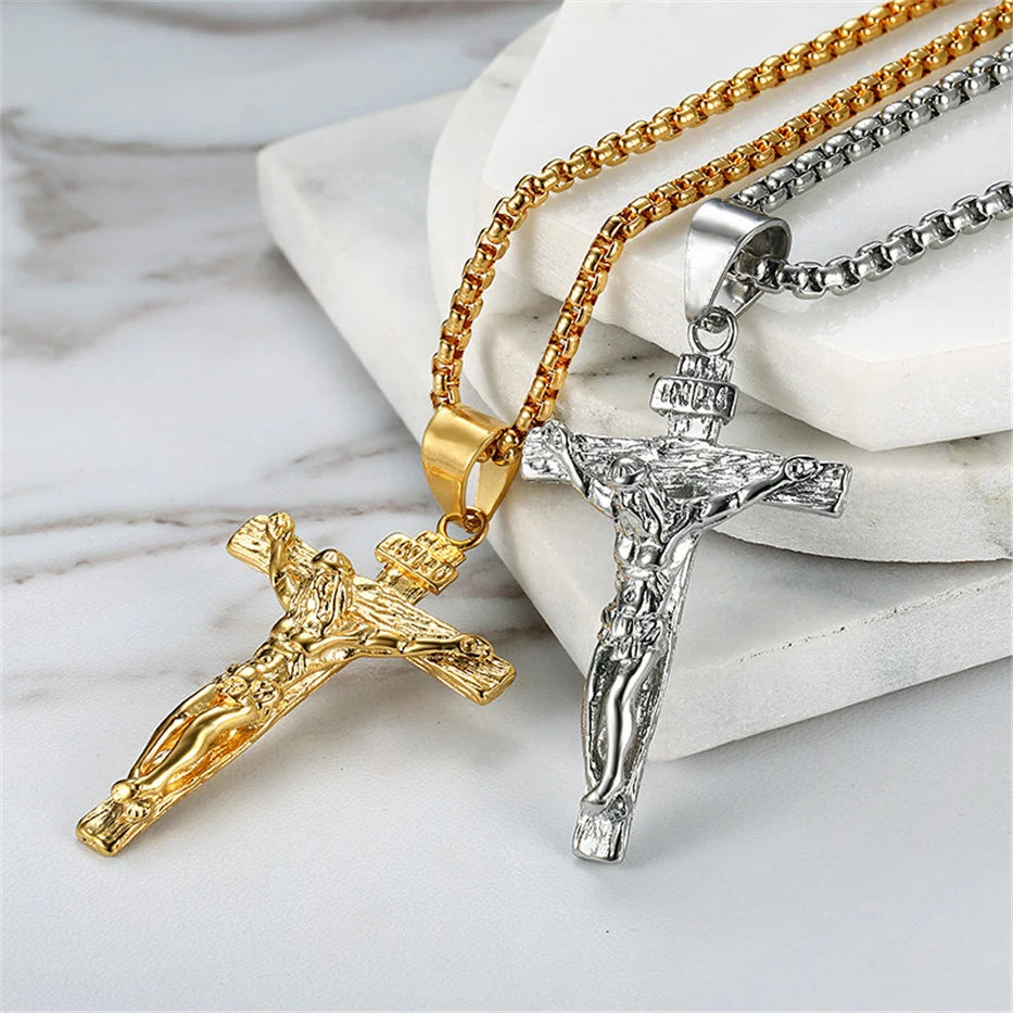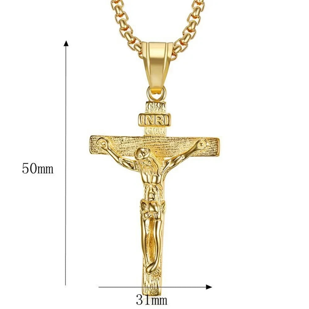 Religious Jesus Christ Cross Pendant Necklace for Women/Men Gold Color Stainless Steel Crucifix Necklaces Men Christian Jewelry