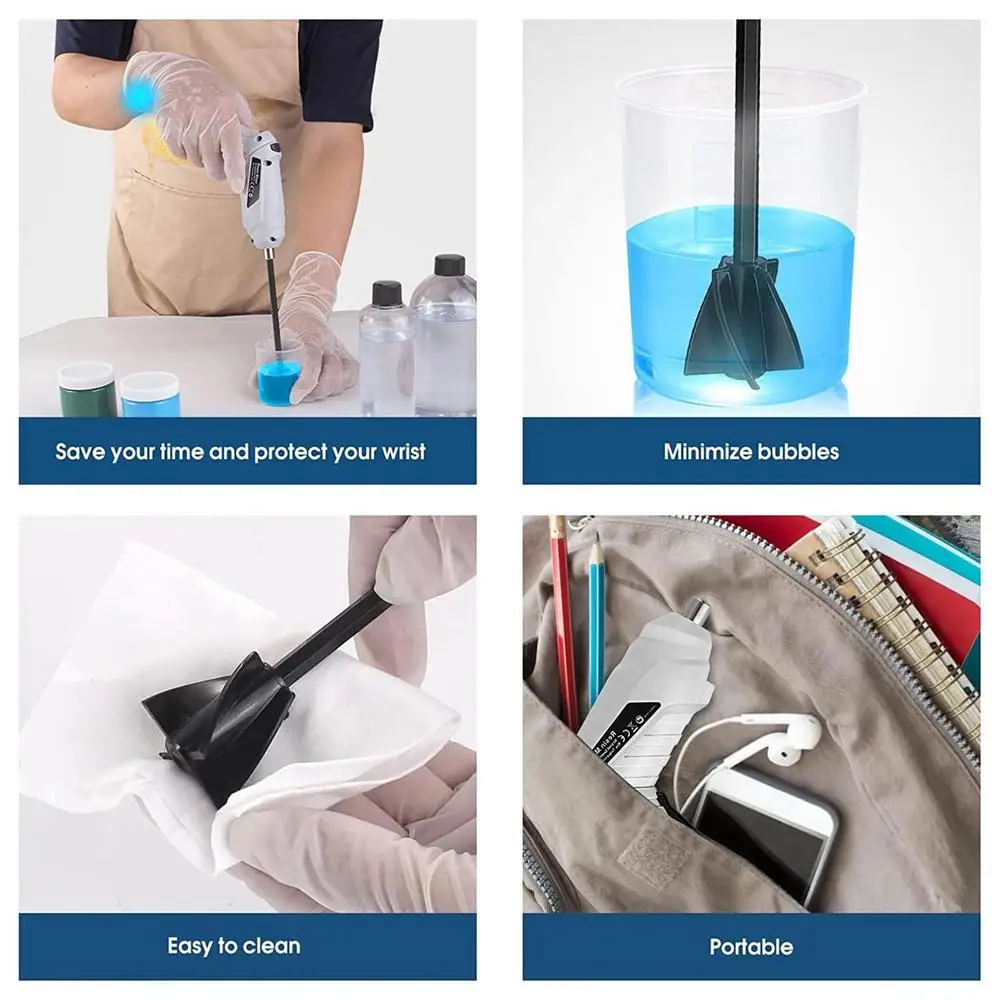 3. The rechargeable handheld resin mixing tool comes with a USB charging cable for easy and fast charging. It works efficiently, quietly, saves time, and has low noise. At the same time, it is light and compact. You can take it with you wherever you go.