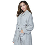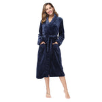 RONGTAI Women's solid color lapel bathrobe autumn and winter models facecloth warm and comfortable long-sleeved robe homewear