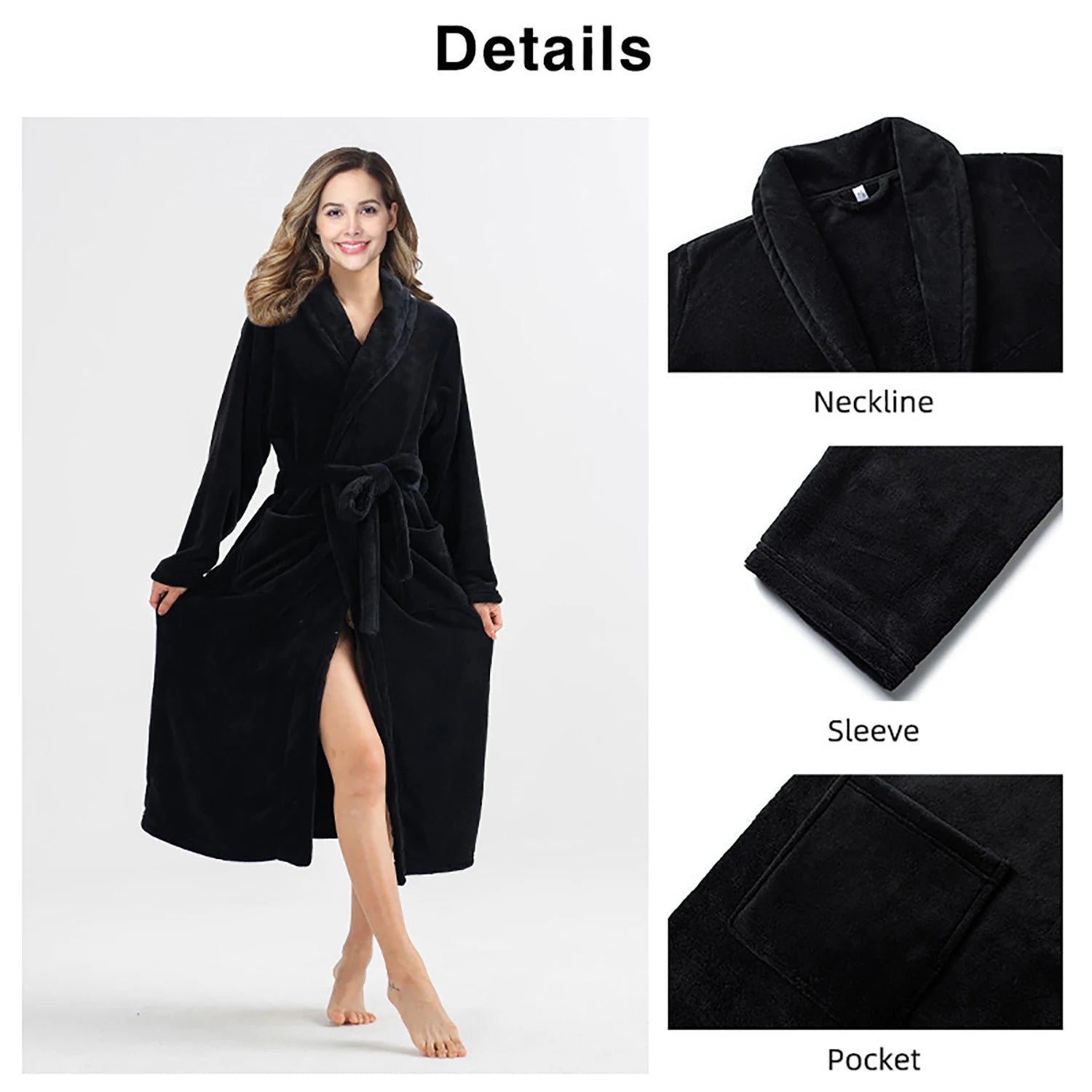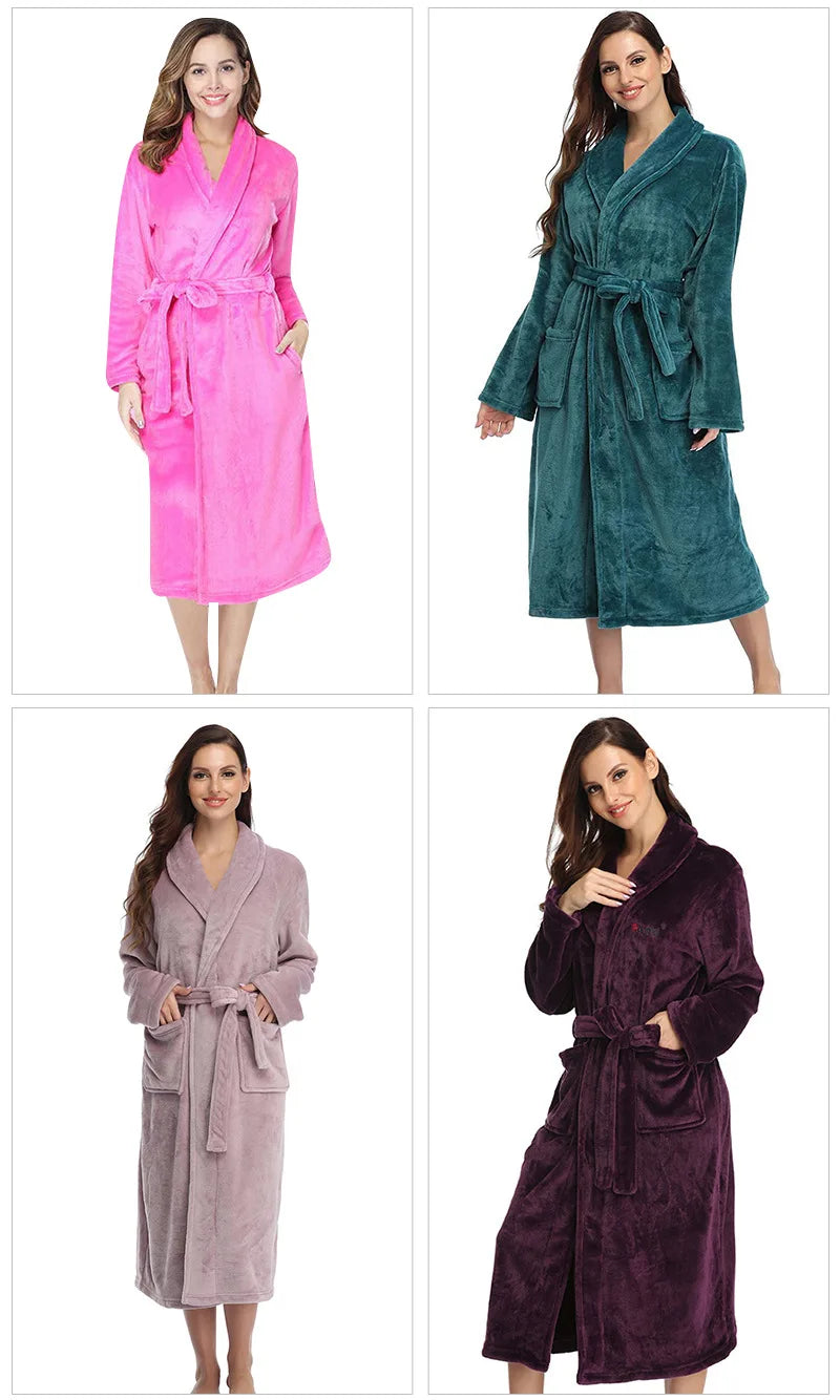 Thick shawl collar and two pockets:This fleece women robe has a thick collar that locks in the warmth of the head and neck. In addition, each long bathrobes has two large pockets, which can hold small items such as mobile phones and