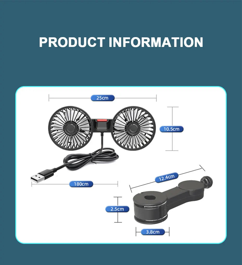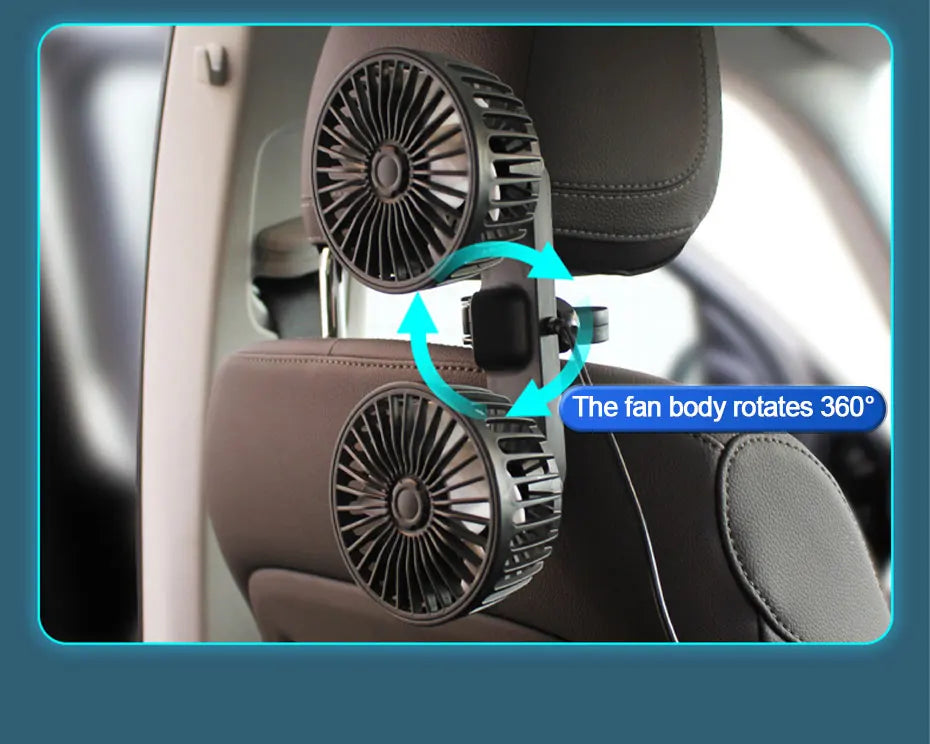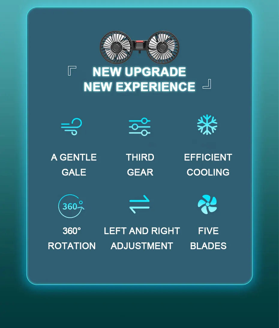 SEAMETAL 3-speed Car Seat Back Cooling Fan USB Charge Dual Head Fan 360 Degree Rotation Neck Cooler for Summer Car Accessories