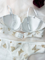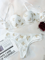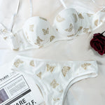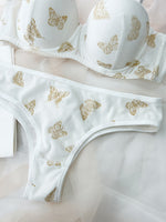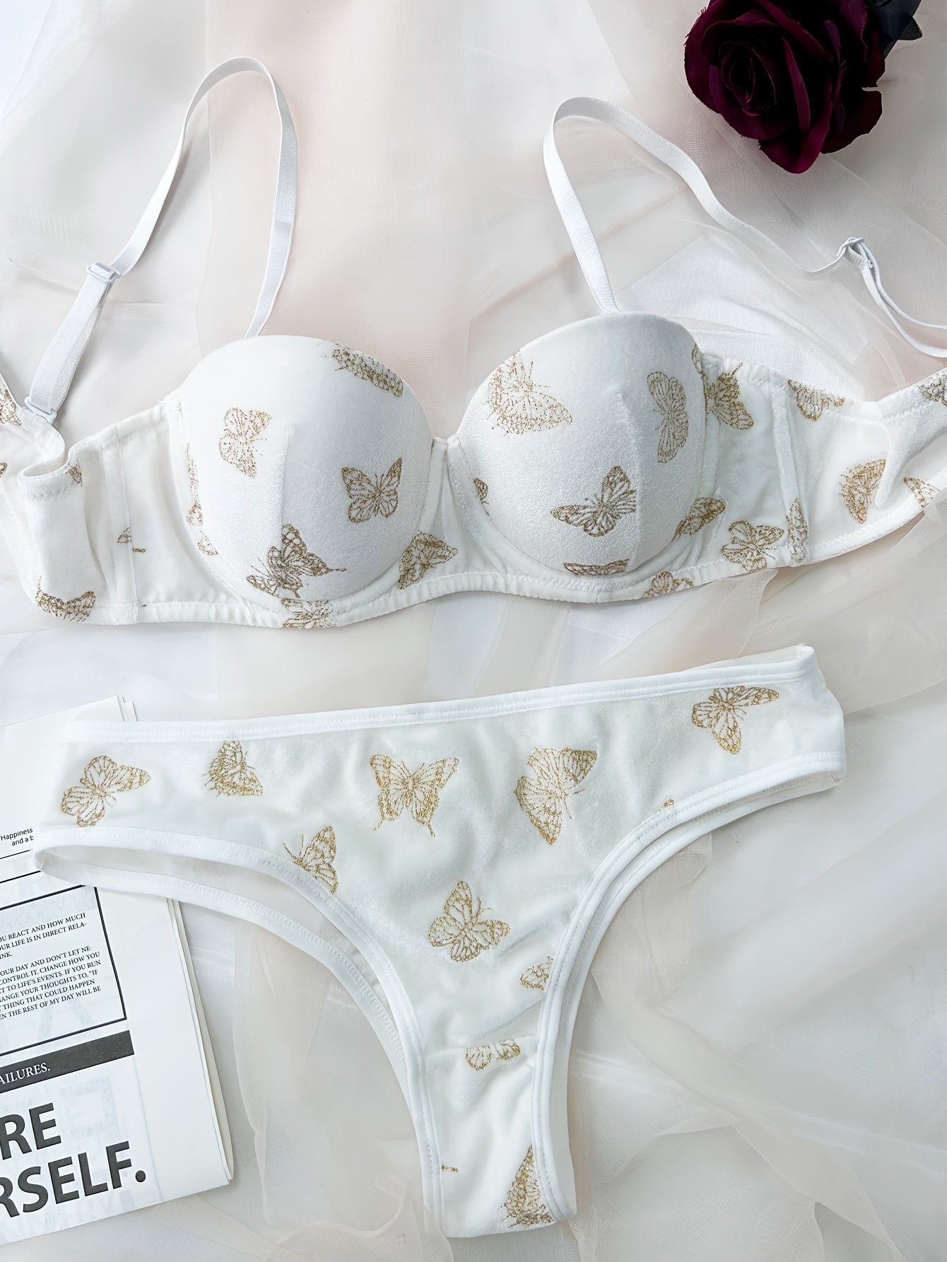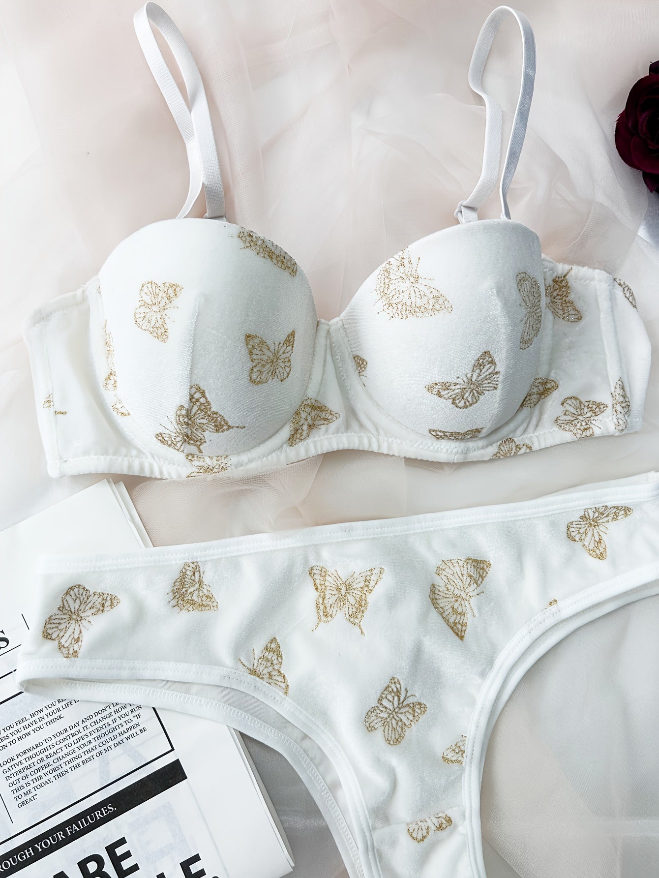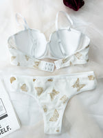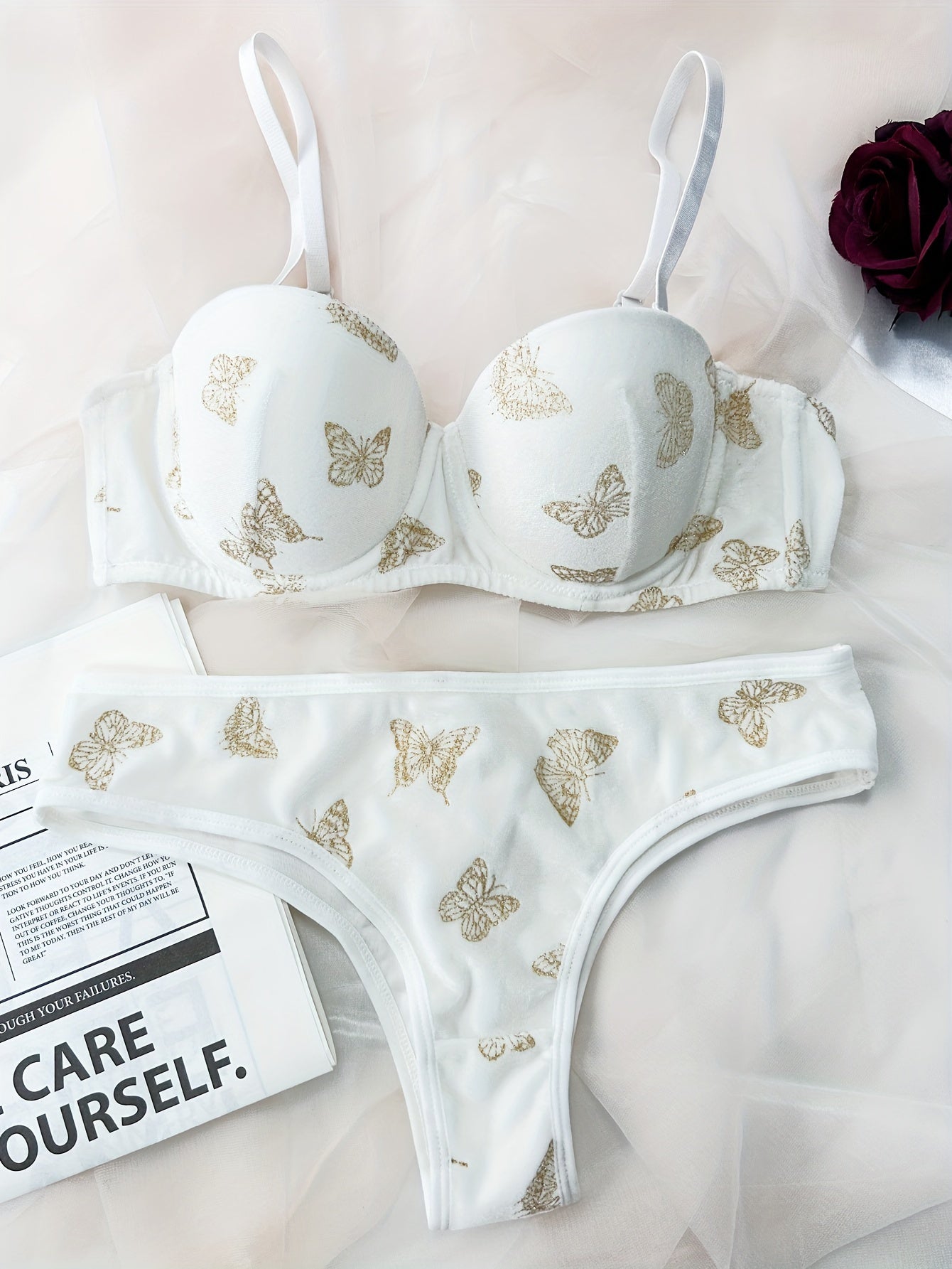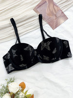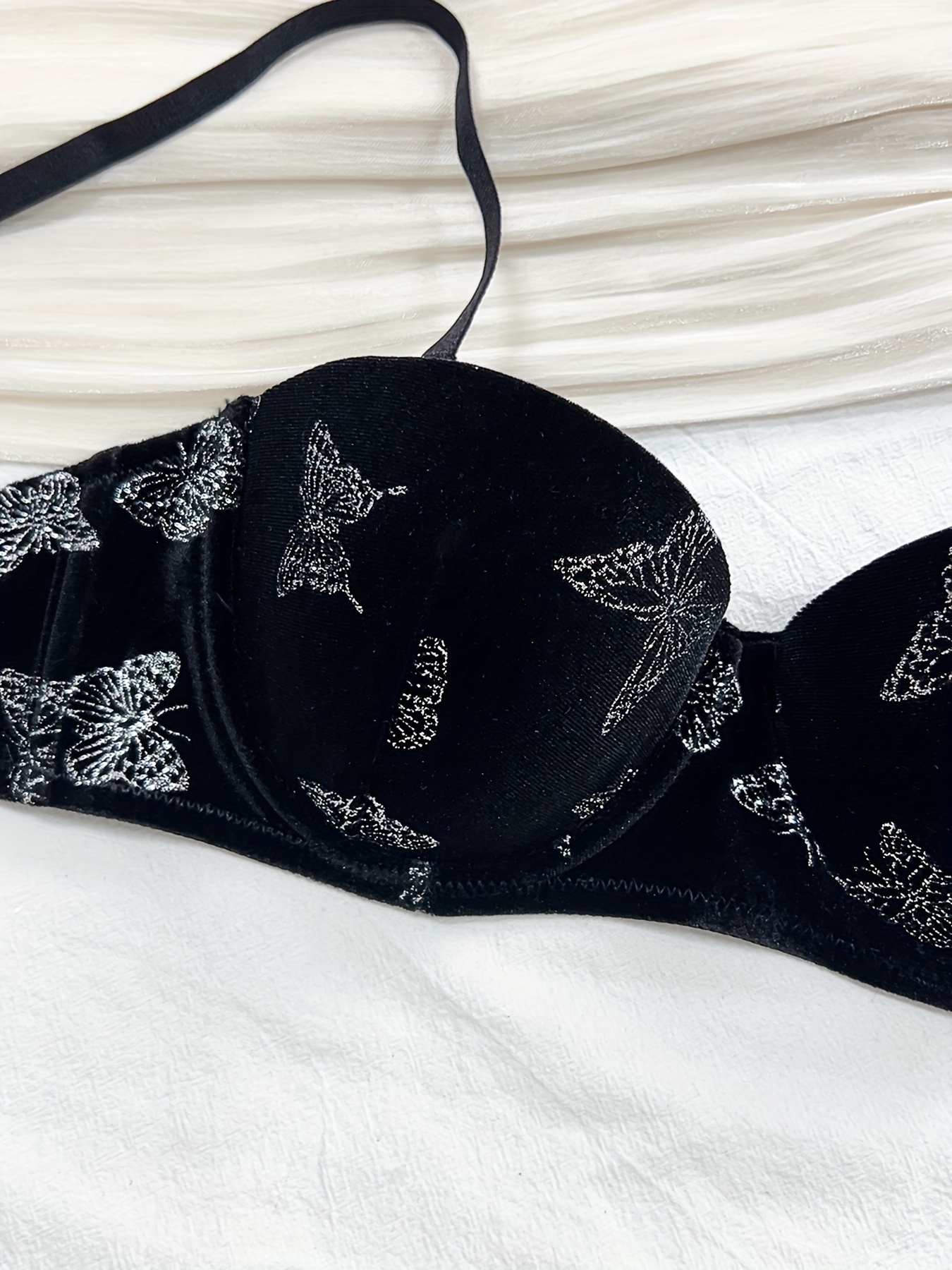 Sexy Lingerie Set, Velvet Butterfly Print Push Up Cami Bra & Panties, Women's Lingerie & Underwear