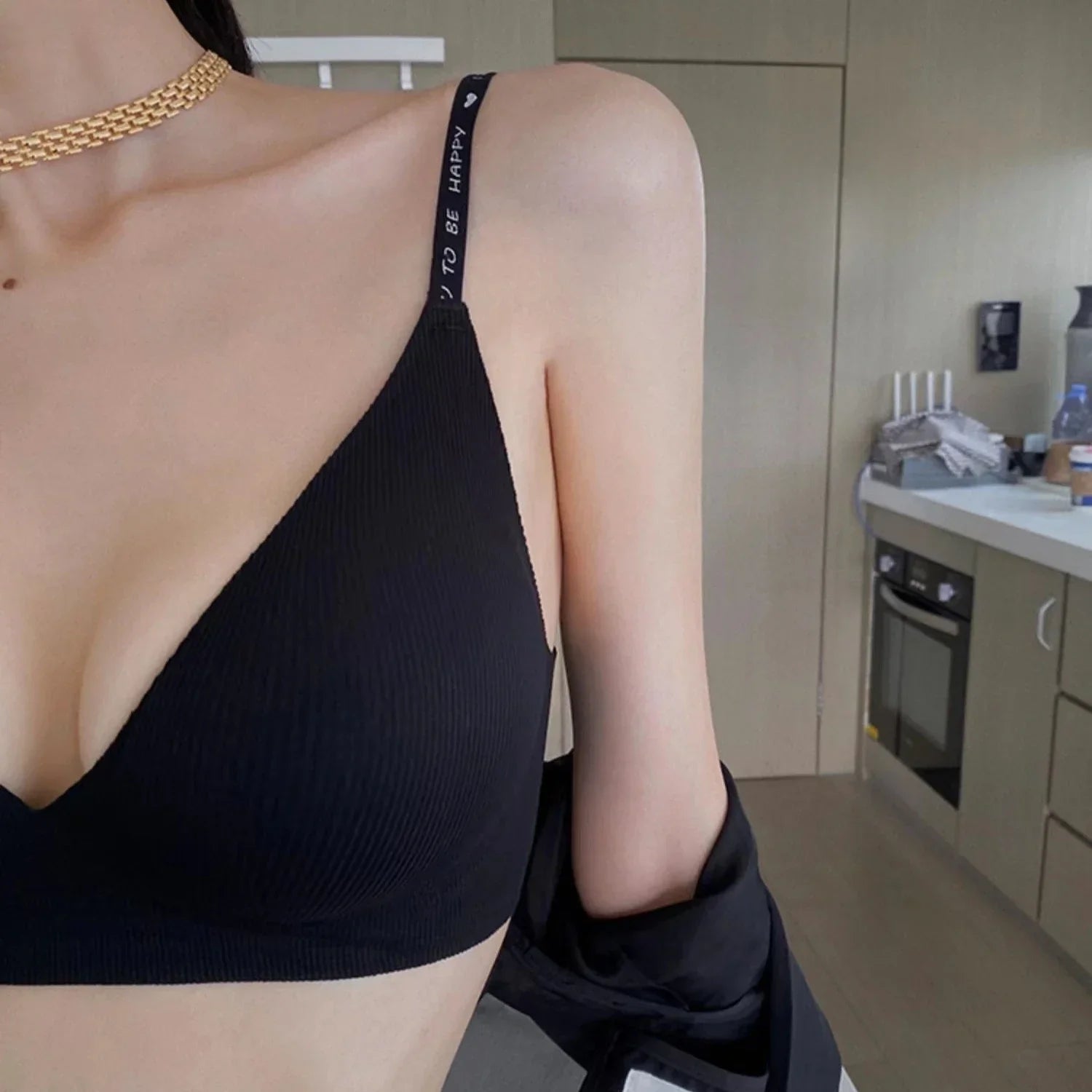 Sexy Seamless Bras for Women Wireless Underwear Push Up Brasieres Deep V Bralette Invisible Letter Strap Bra Lingerie