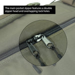 The Main Pocket Zipper Features a Double Zipper Head And Overlapping Lock Holes.