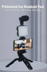 Smartphone Vlogging Kit With Tripod Phone Holder Mini Microphone LED Fill Light Starter For TikTok Live Stream Video YouTube