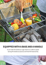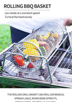 Stainless Steel Rolling BBQ Grill Mesh Basket Grill Rotisserie Basket roll Barbecue cage Roaster